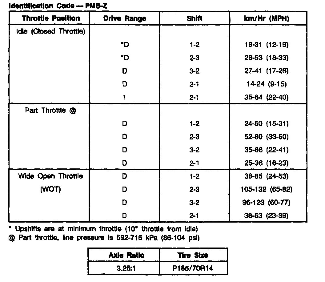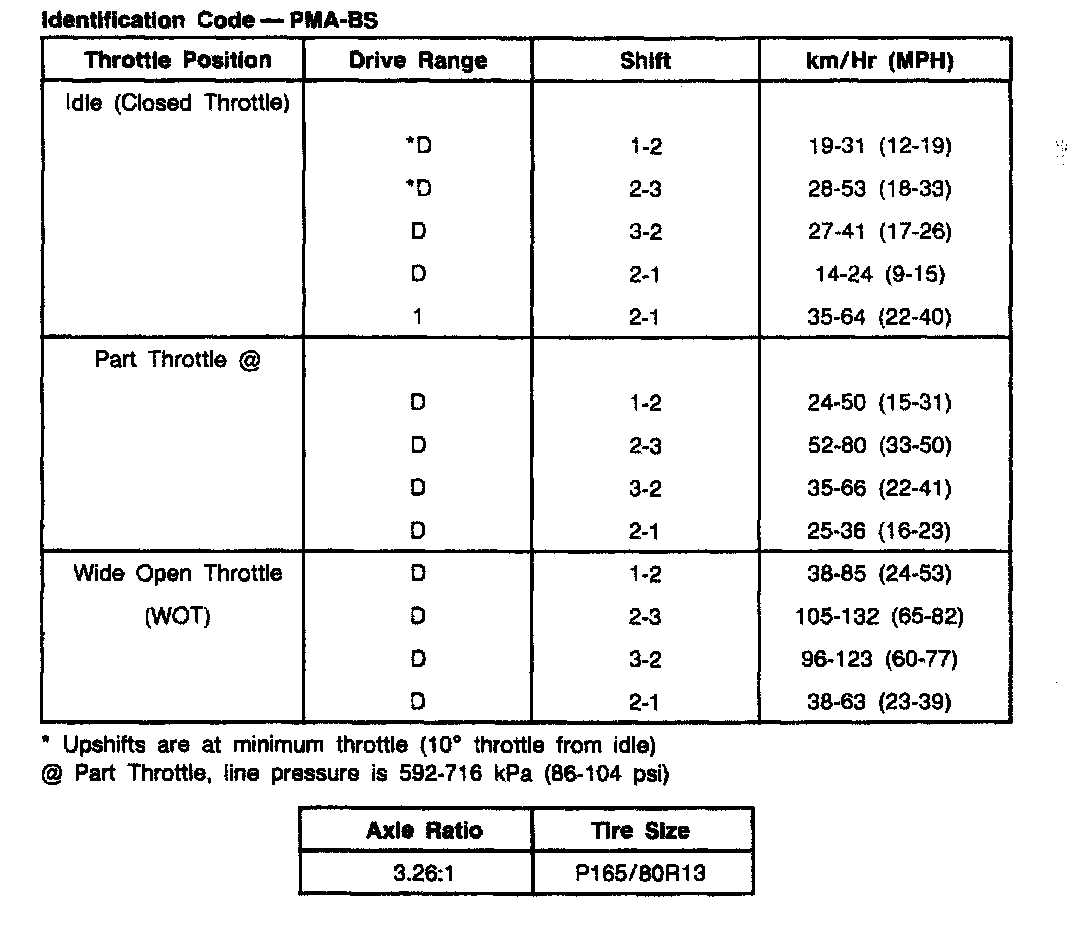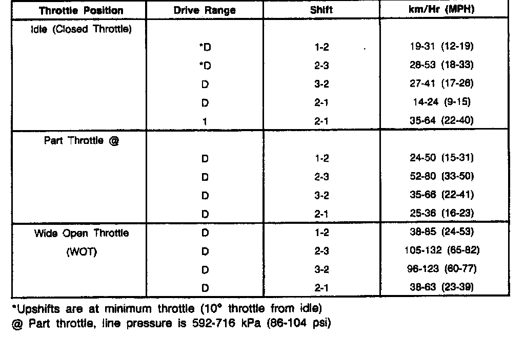 1.9L ATX Shift Speeds: