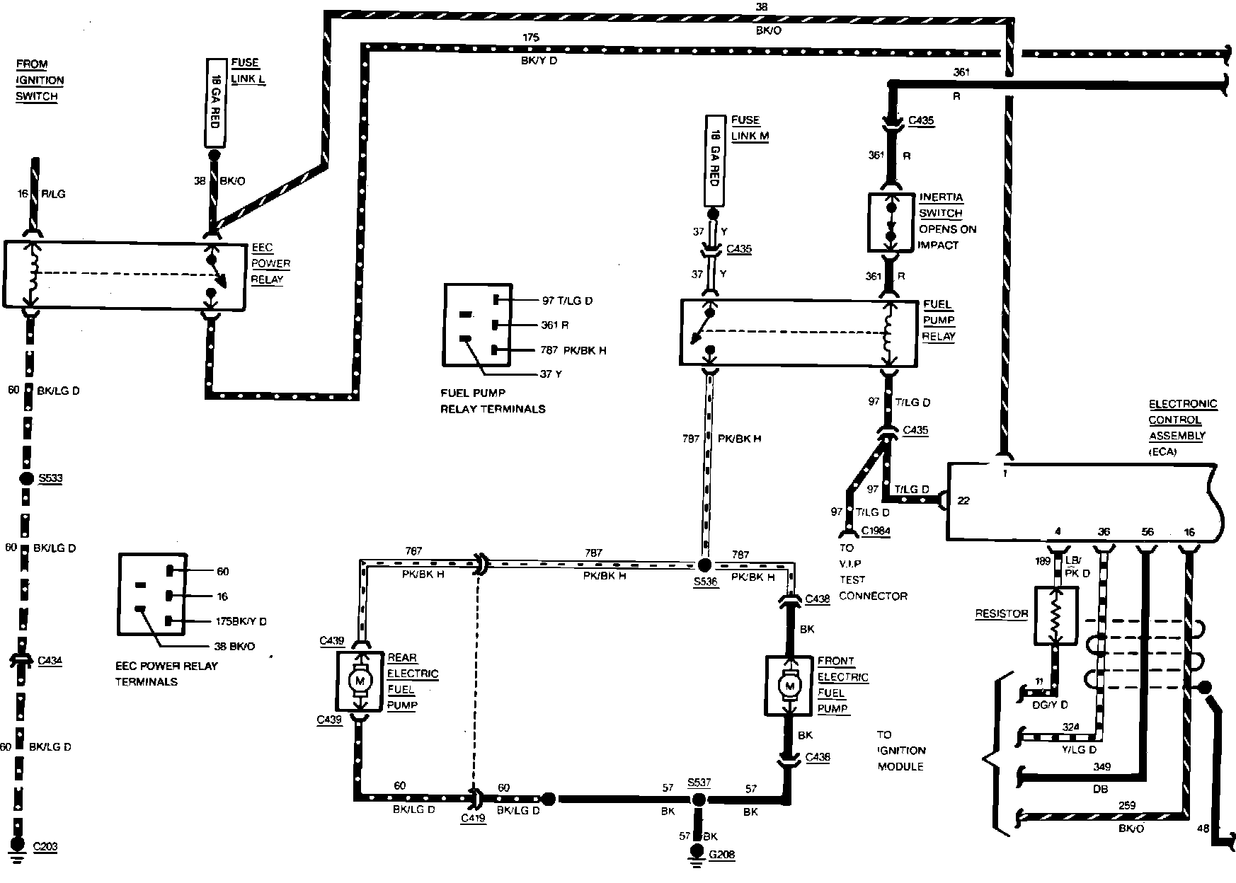 Fig. 43 Electronic Engine Control Output & Power Wiring Circuit (Part 1 of 2). 1984 Cougar & Thunderbird with 8 Cyl Engine: