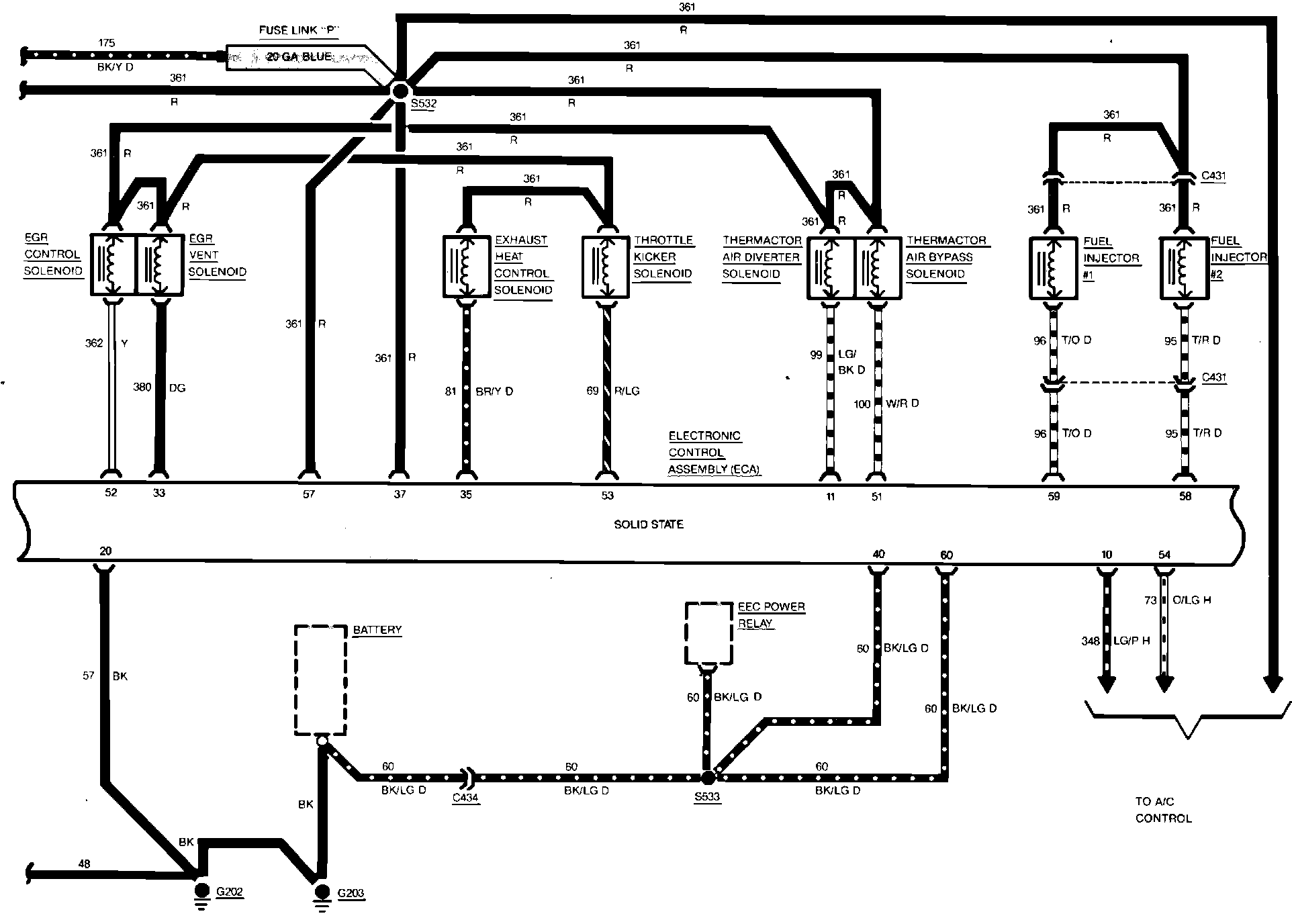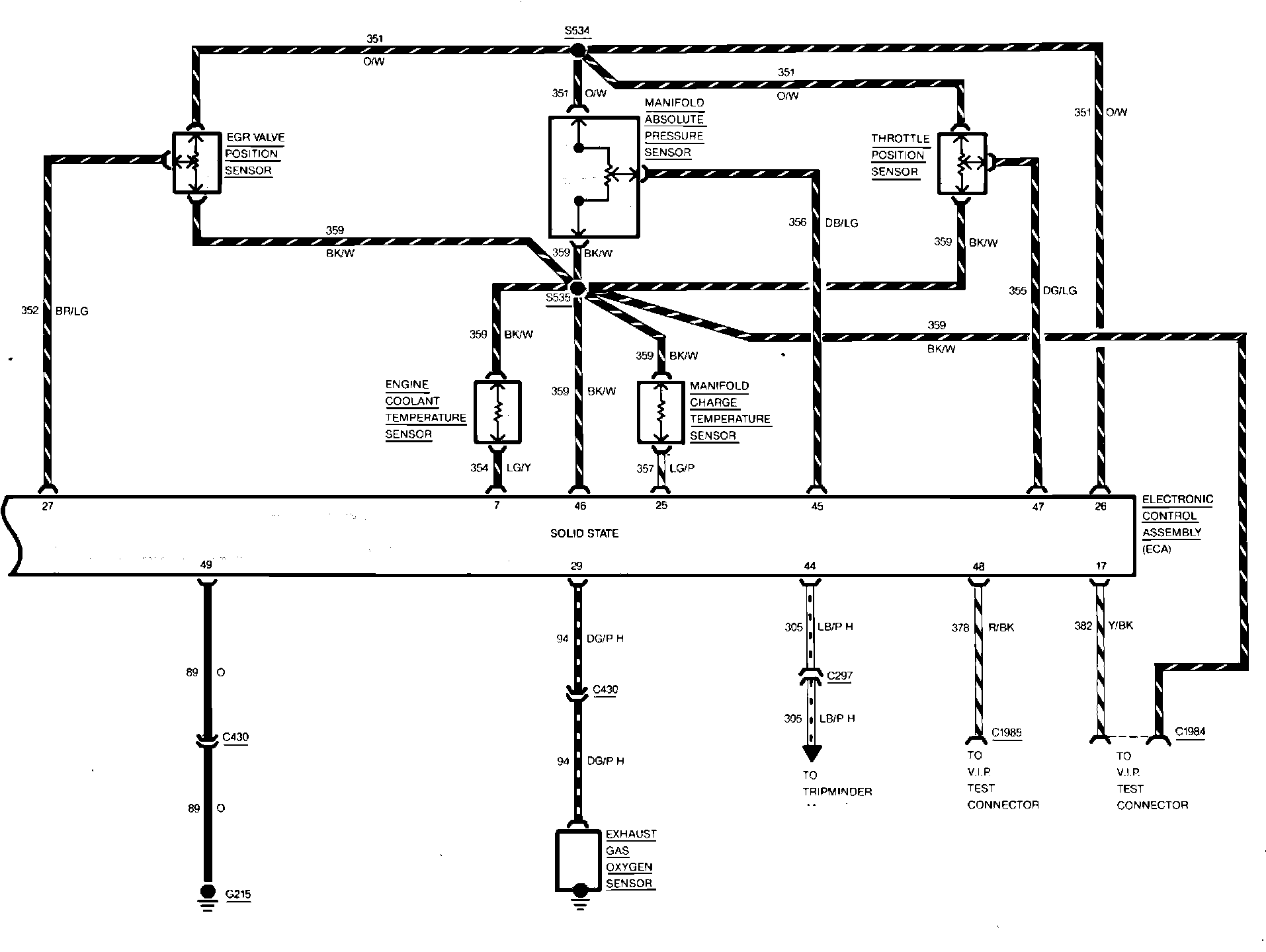 Fig. 44 Electronic Engine Control Sensor Wiring Circuit. 1984 Cougar & Thunderbird with 8 Cyl Engine: