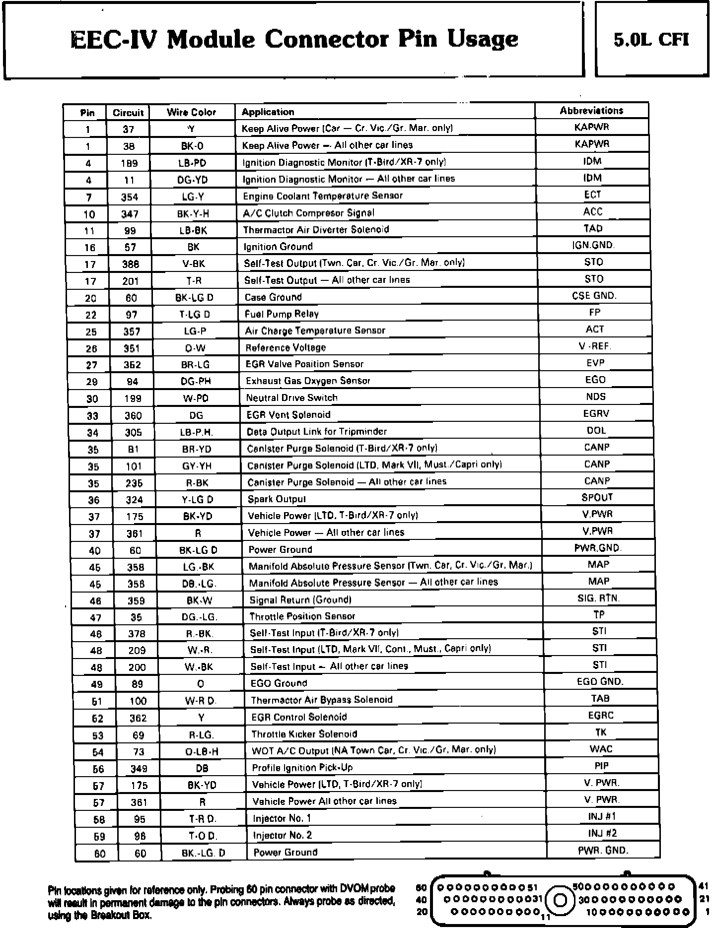 Fig. 165 EEC-IV module connector pin usage. 1985 V8-302 W/CFI: