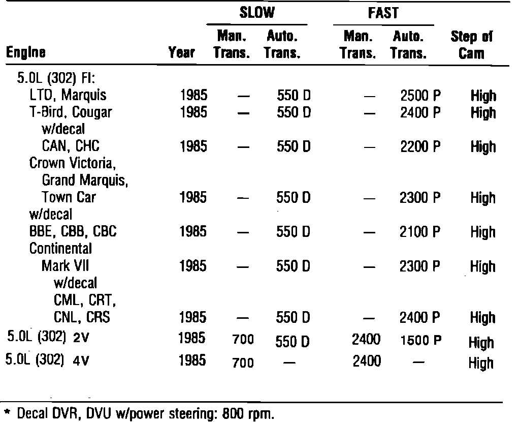 Idle Speed Specifications: