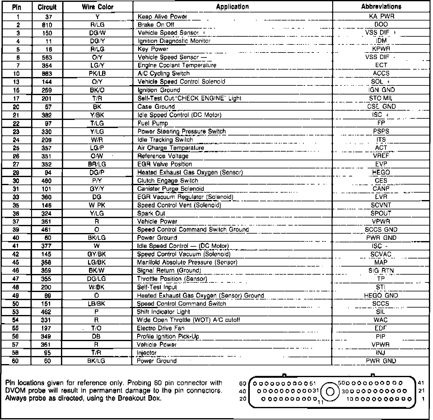 Pin Usage - EEC-IV Module Connector: