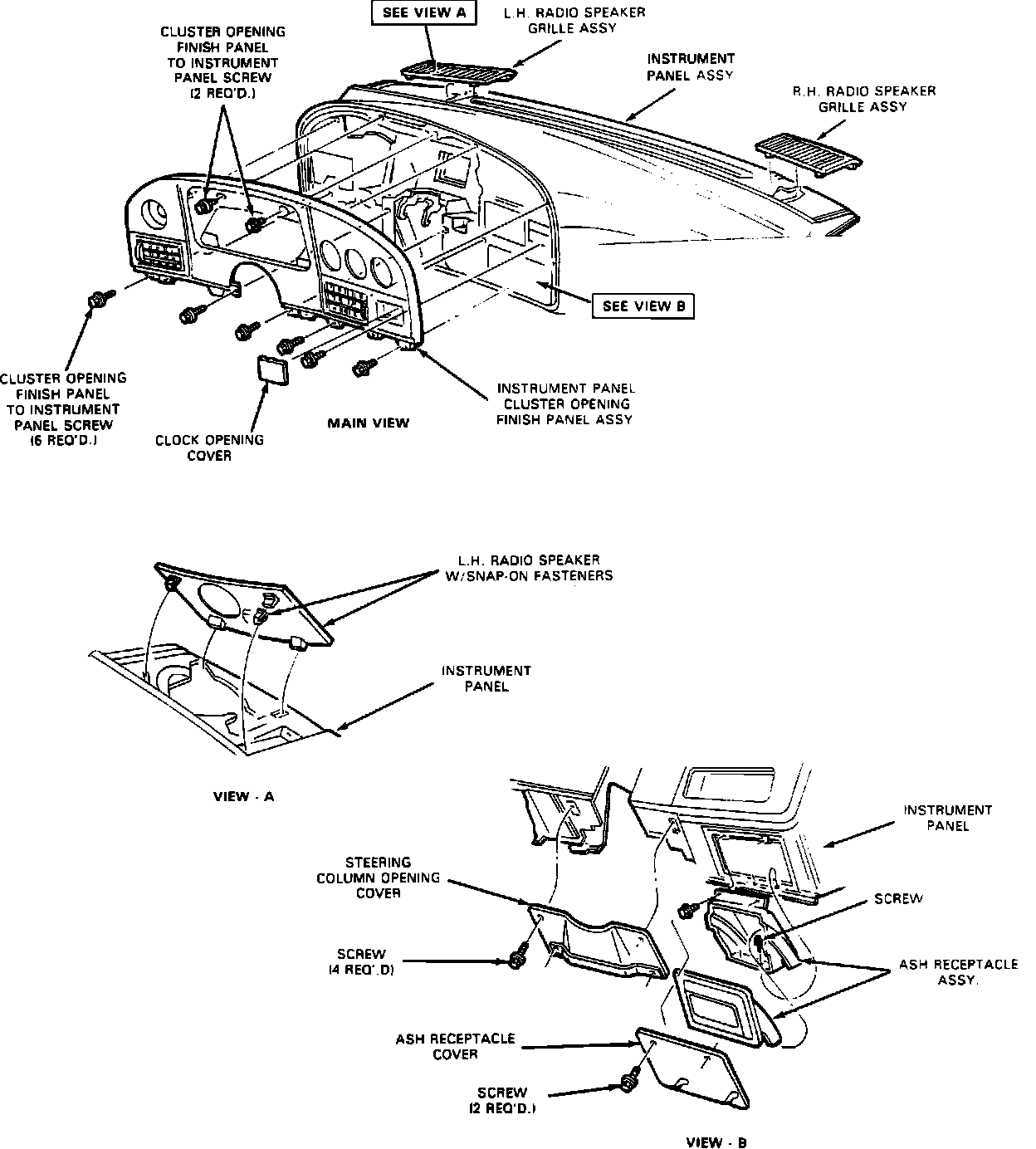 11. Remove seven cluster opening finish panel retaining screws, one jam nut behind headlamp switch knob. Remove finish panel by rocking its upper edge towards driver's seat.