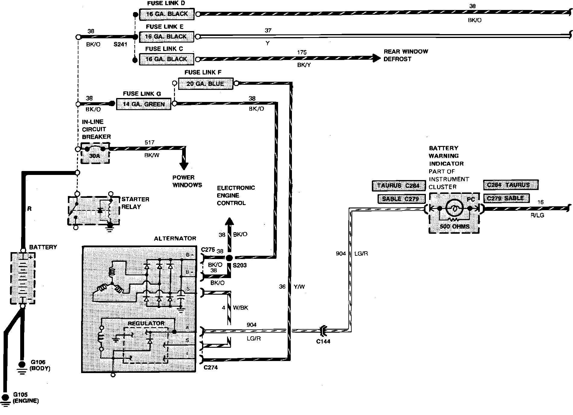Charge/Power Distribution Wiring Circuit (Part 1 of 2). 4-135/2.5L Engine: