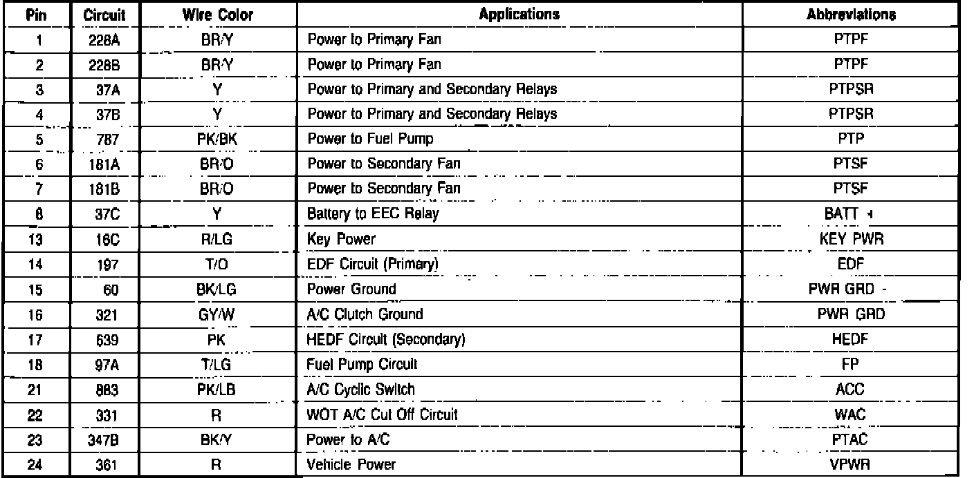 Fig. 301 EEC-IV integrated controller pin usage. 1987 4-140 EFI turbocharged engine: