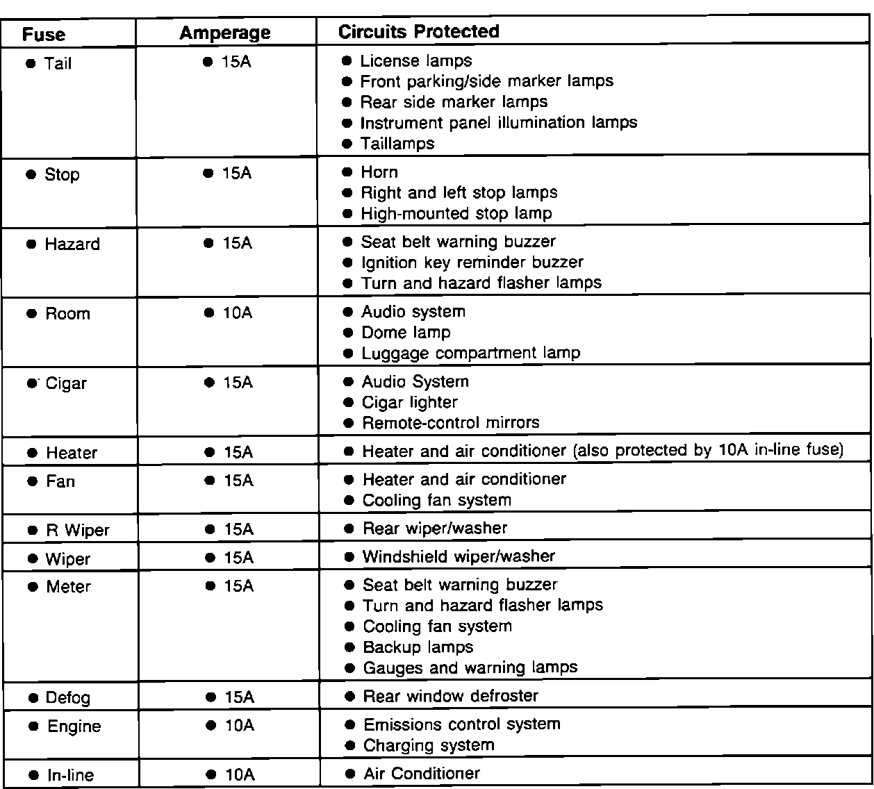 Fuse Panel Circuit Protection:
