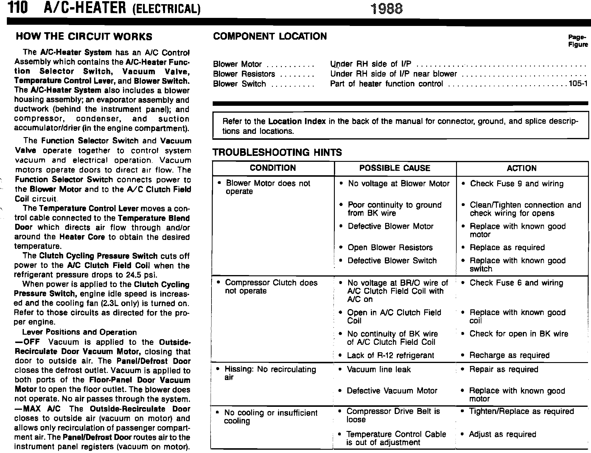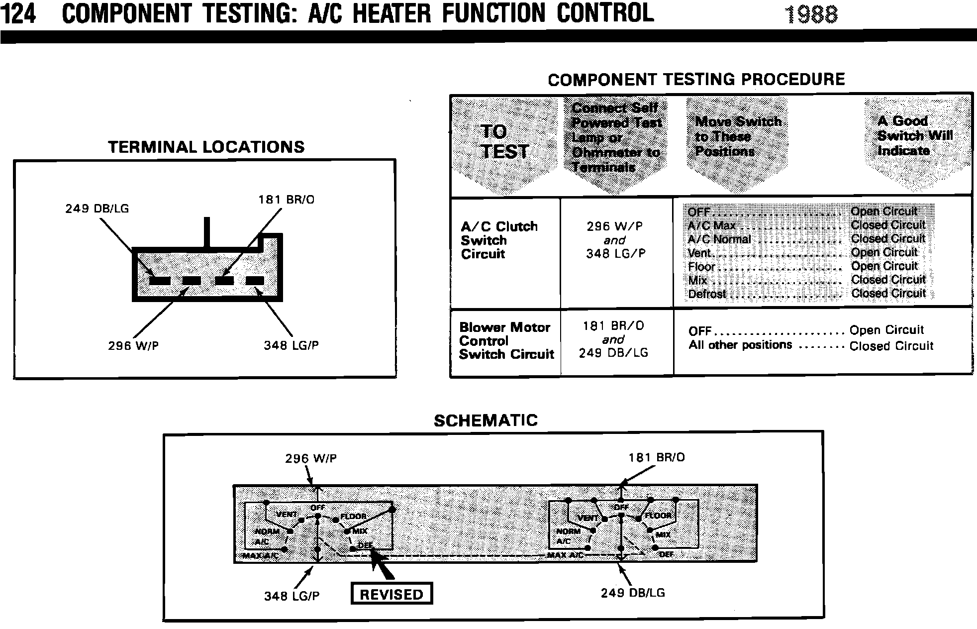 1988 A/C Heater & Component Test Information