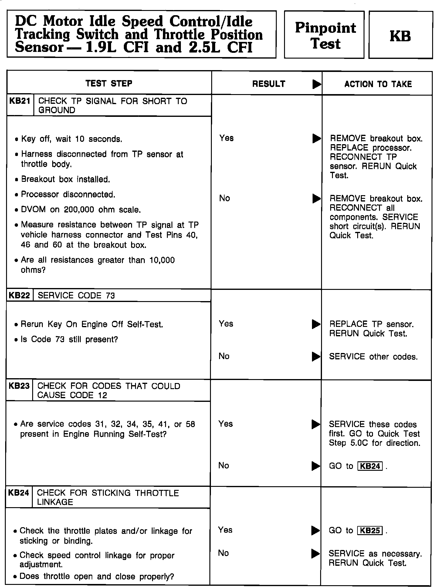 Pinpoint Test KB21 Thru KB24 - DC Motor Idle Speed Control/Idle Tracking Switch/TPS: