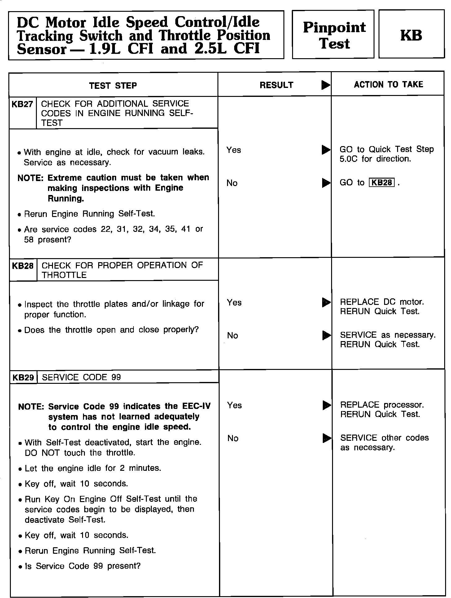 Pinpoint Test KB27 Thru KB29 - DC Motor Idle Speed Control/Idle Tracking Switch/TPS: