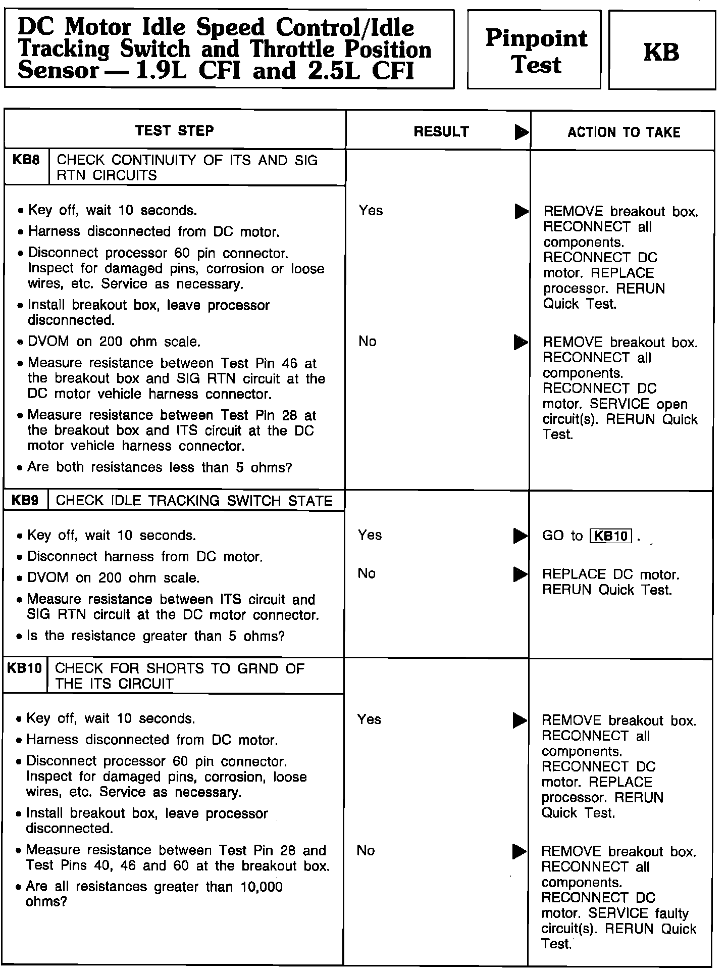 Pinpoint Test KB8 Thru KB10 - DC Motor Idle Speed Control/Idle Tracking Switch/TPS: