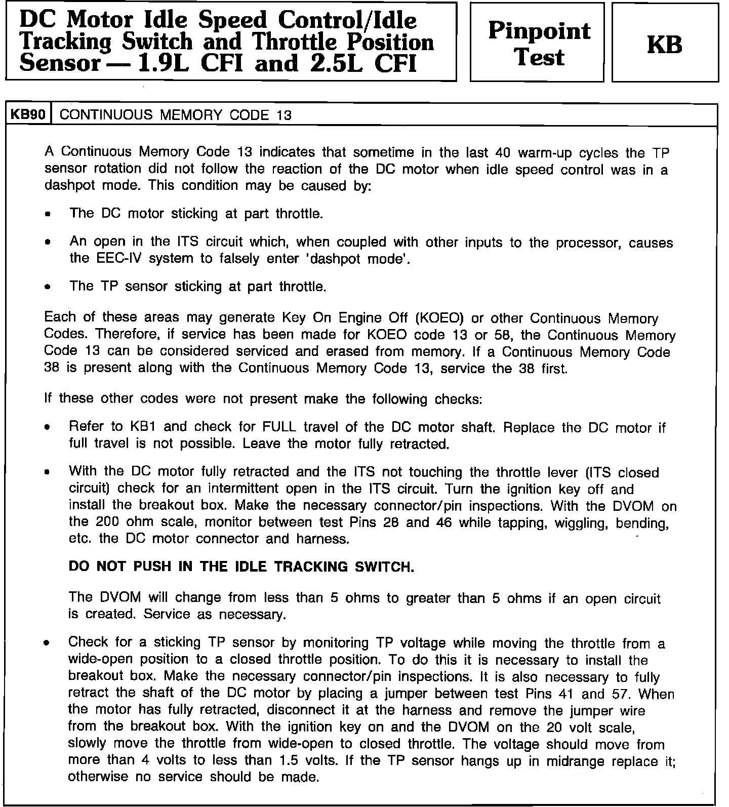 Pinpoint Test KB90 - DC Motor Idle Speed Control/Idle Tracking Switch/TPS: