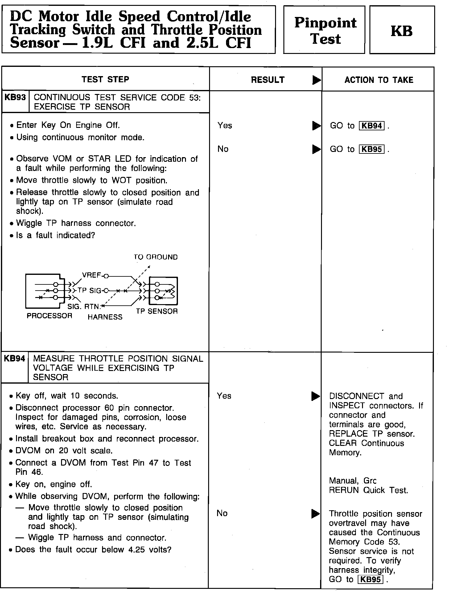 Pinpoint Test KB93 & KB94 - DC Motor Idle Speed Control/Idle Tracking Switch/TPS: