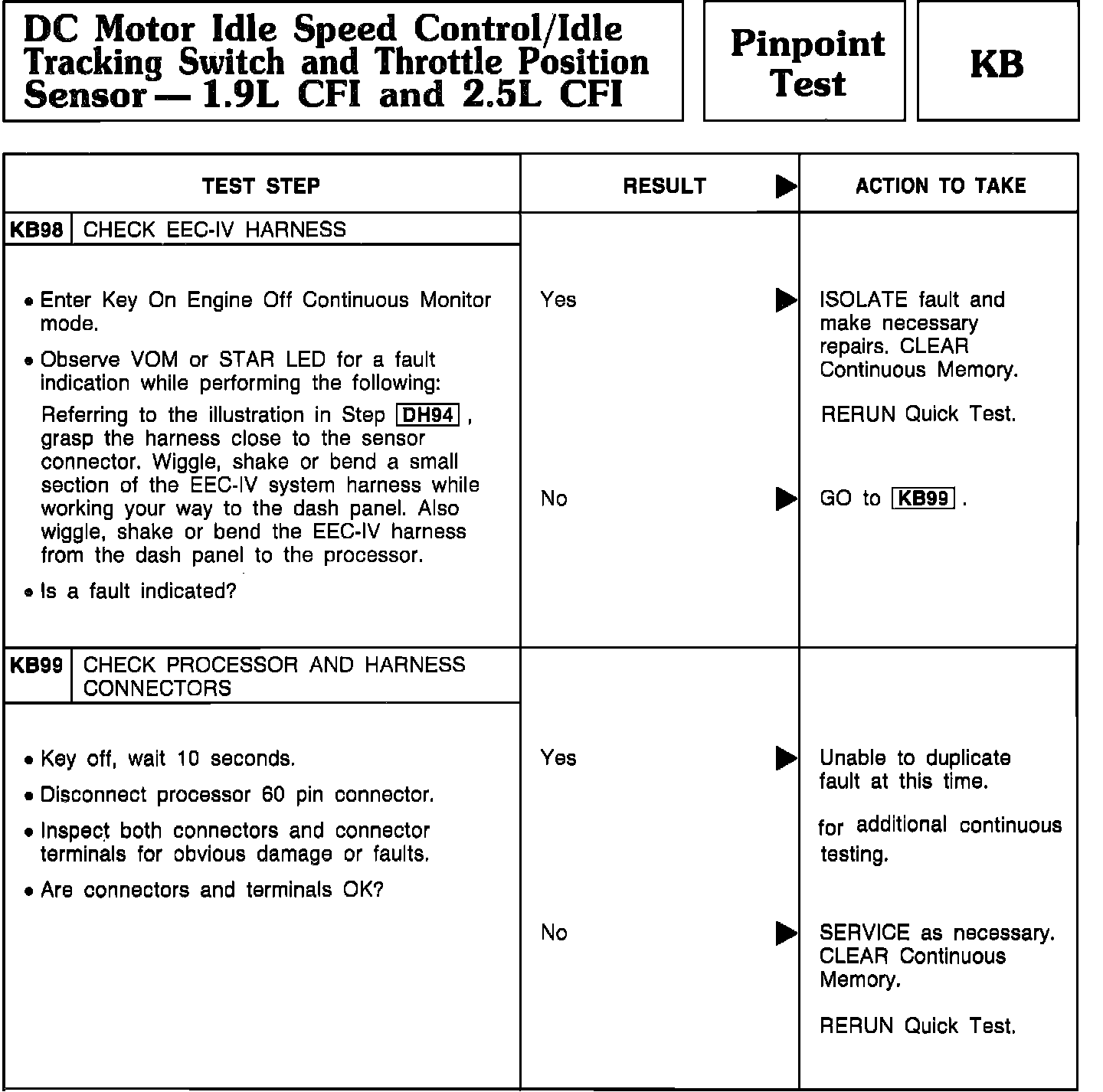 Pinpoint Test KB98 & KB99 - DC Motor Idle Speed Control/Idle Tracking Switch/TPS: