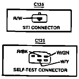 The Self Test Input (STI) connector C135 is Black, with a Red/White wire.