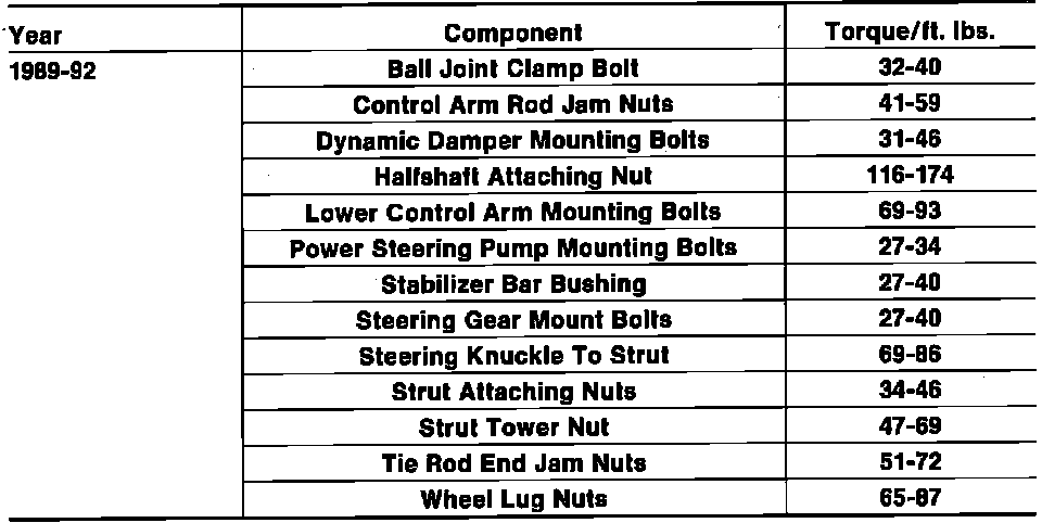 Tightening Specifications:
