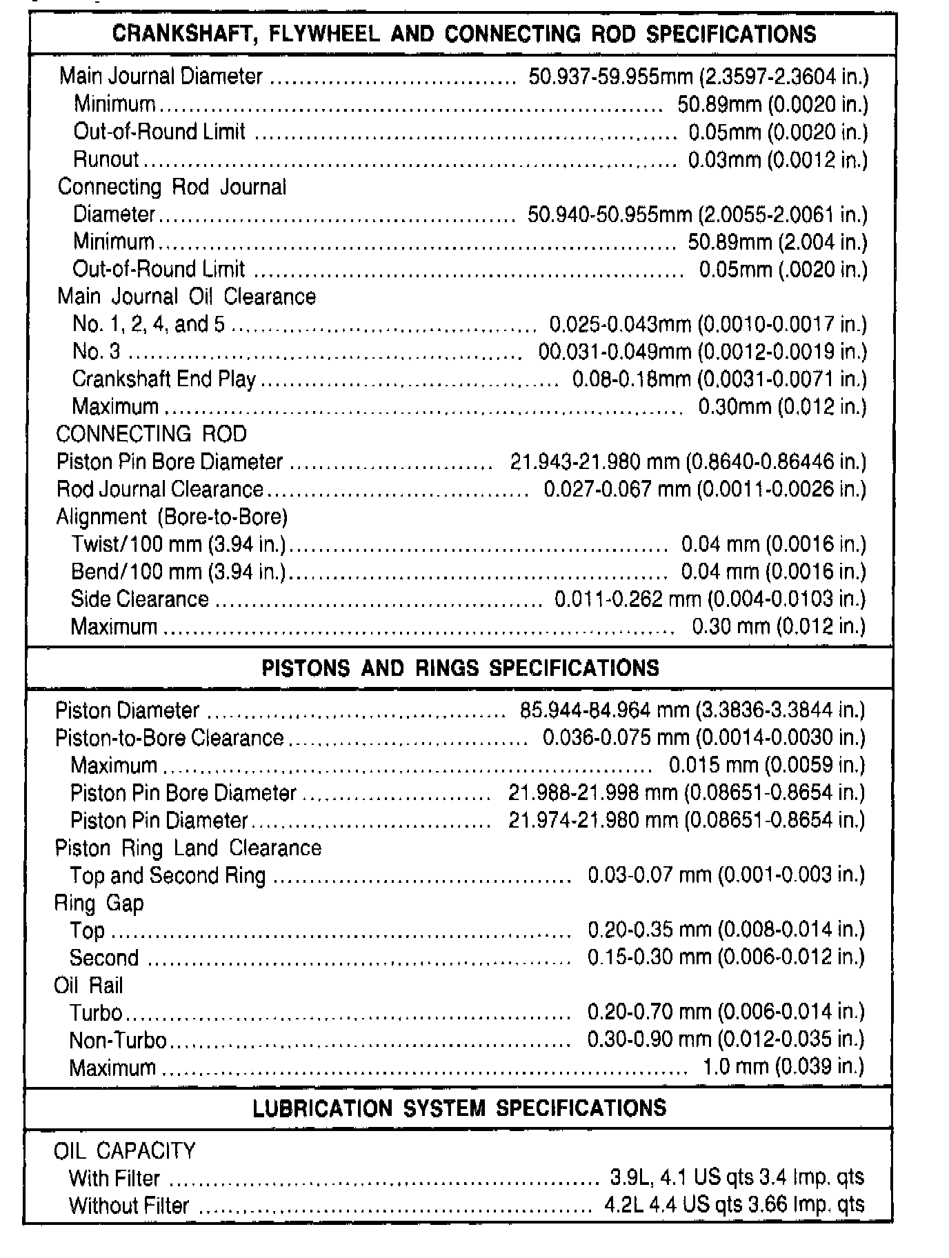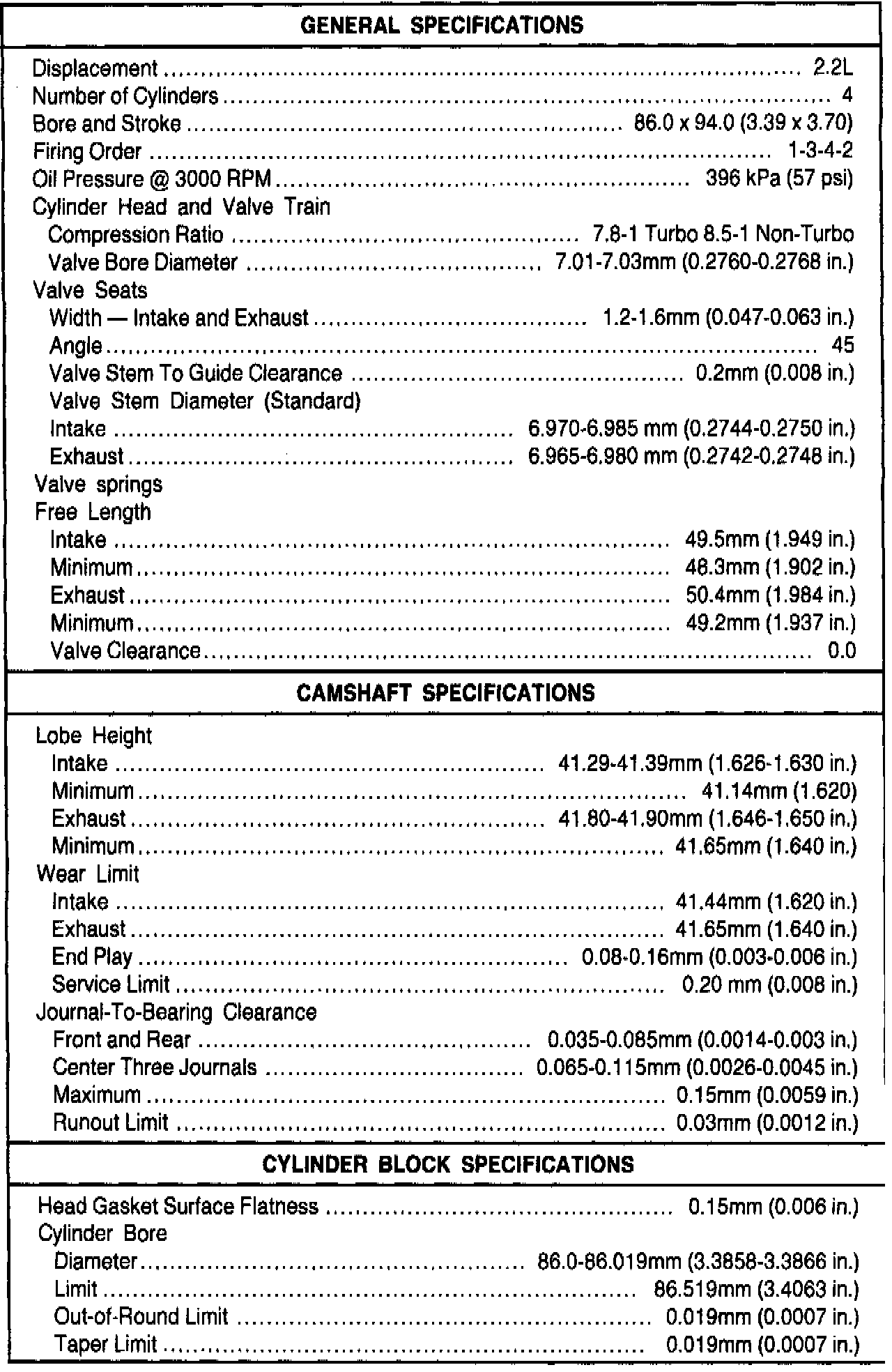 General Engine Specifications