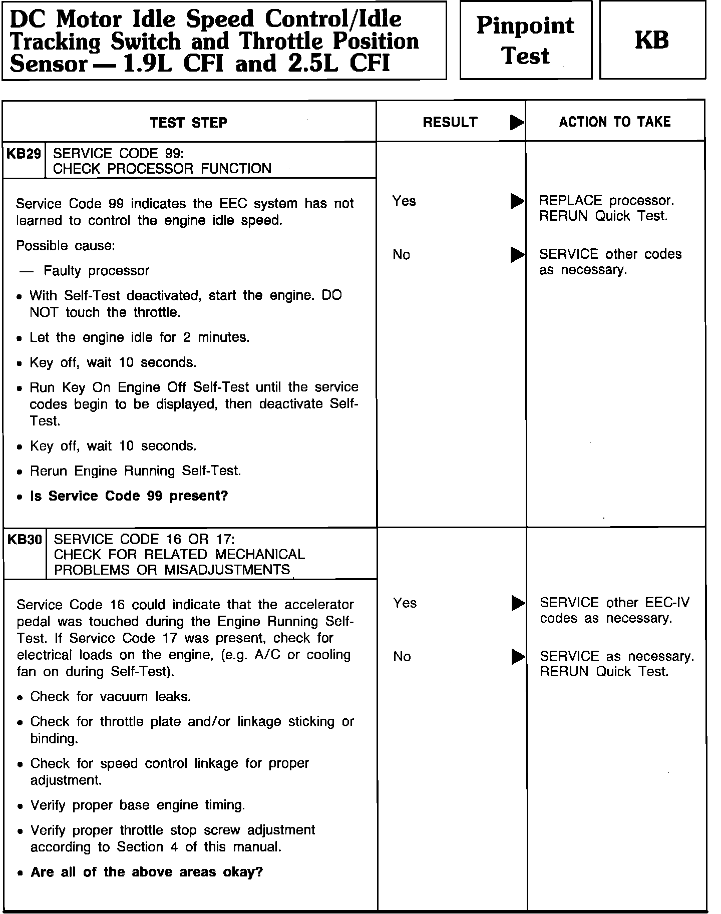 Pinpoint Test KB29 & KB30 - DC Motor Idle Speed Control/Idle Tracking Switch/TPS:
