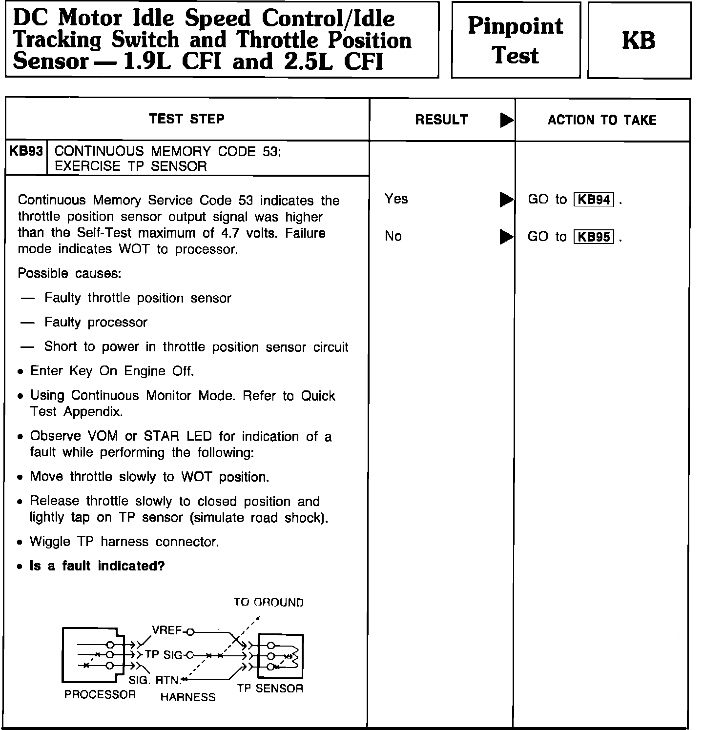 Pinpoint Test KB93 - DC Motor Idle Speed Control/Idle Tracking Switch/TPS: