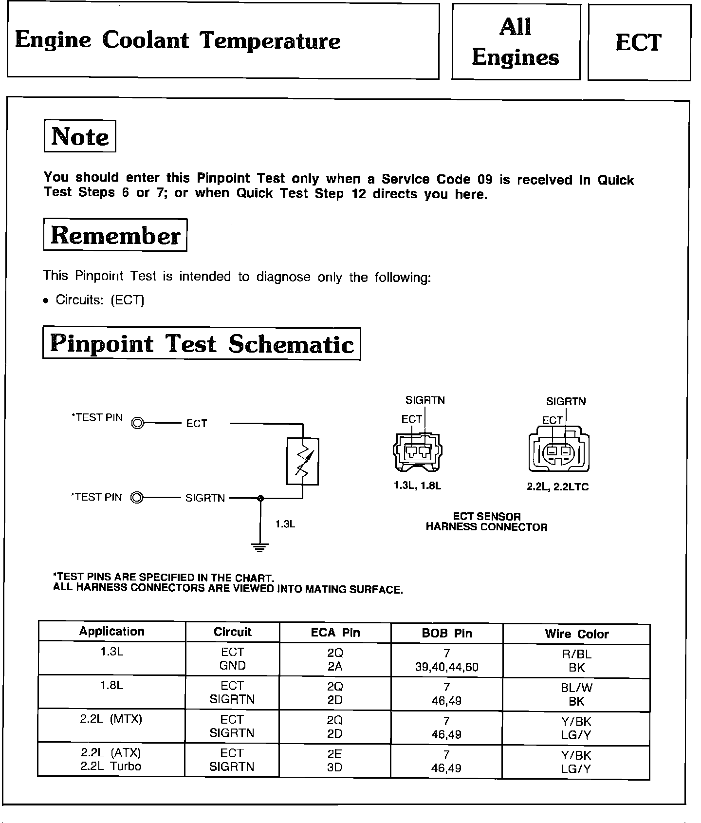 Pinpoint Test ECT - Engine Coolant Temperature: