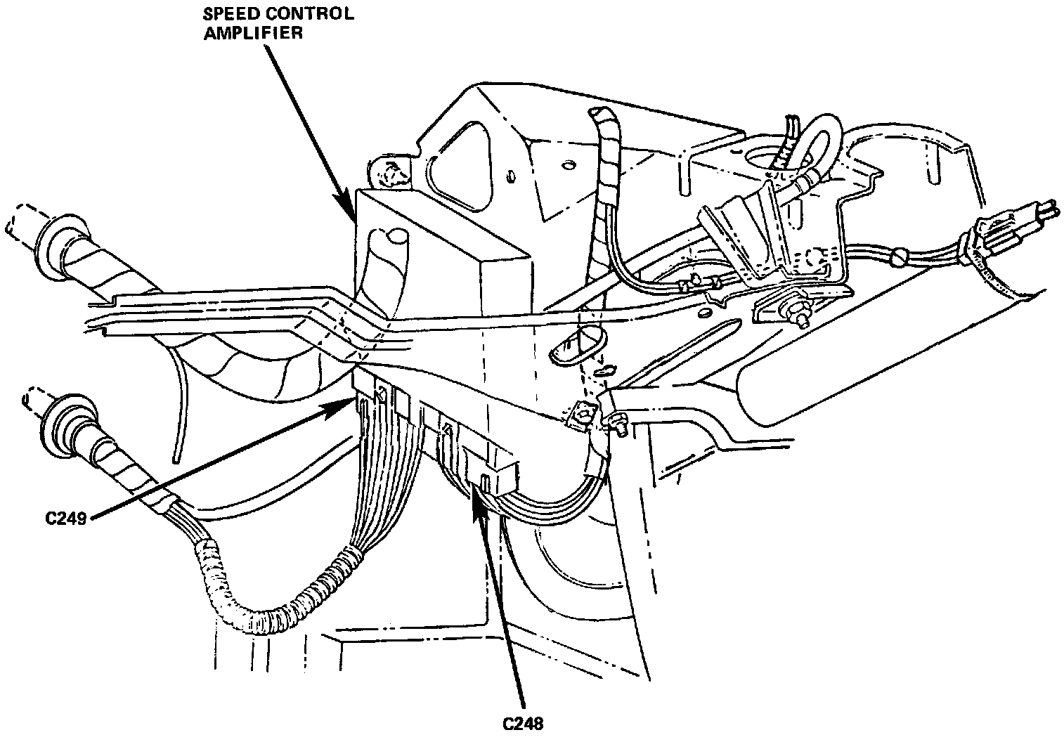 The Cruise Control Module or Speed Control Amplifier is located Behind the Instrument Panel, and Left of the Steering Column.