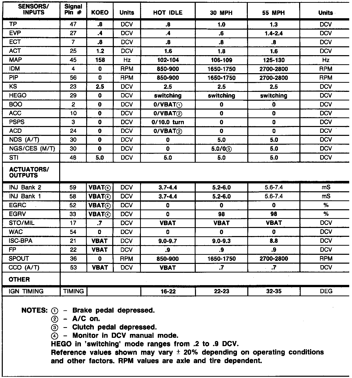 Normal Scan Data Values (Includes PIDs)