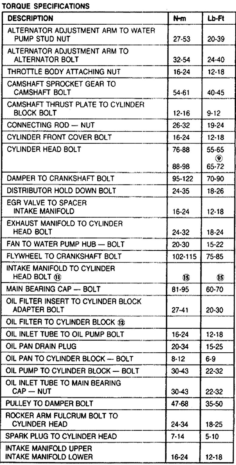 1990 Mustang 5.0L Torque Specifications