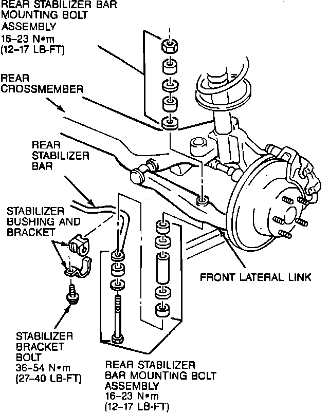 4. Remove nut from lateral link mounting bolt at the rear crossmember. Remove lateral link.