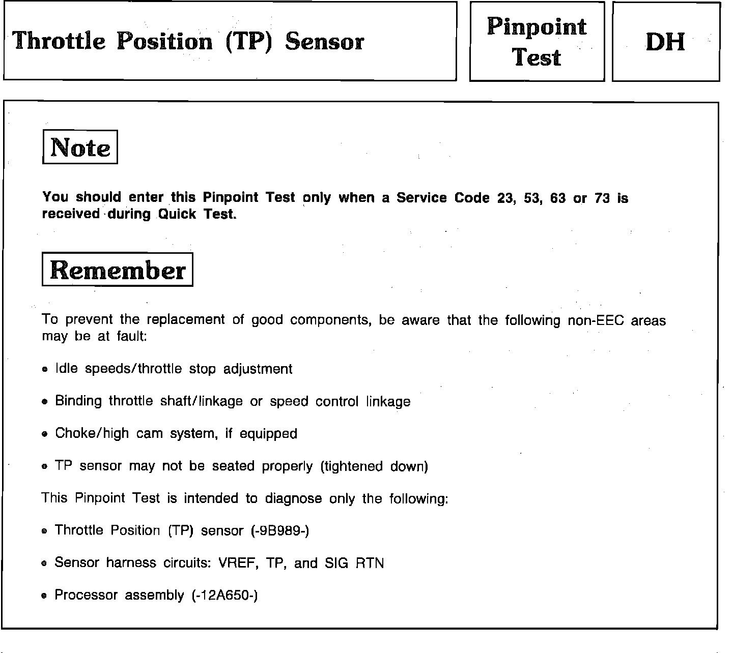 Pinpoint Test DH - Throttle Position Sensor (TPS):