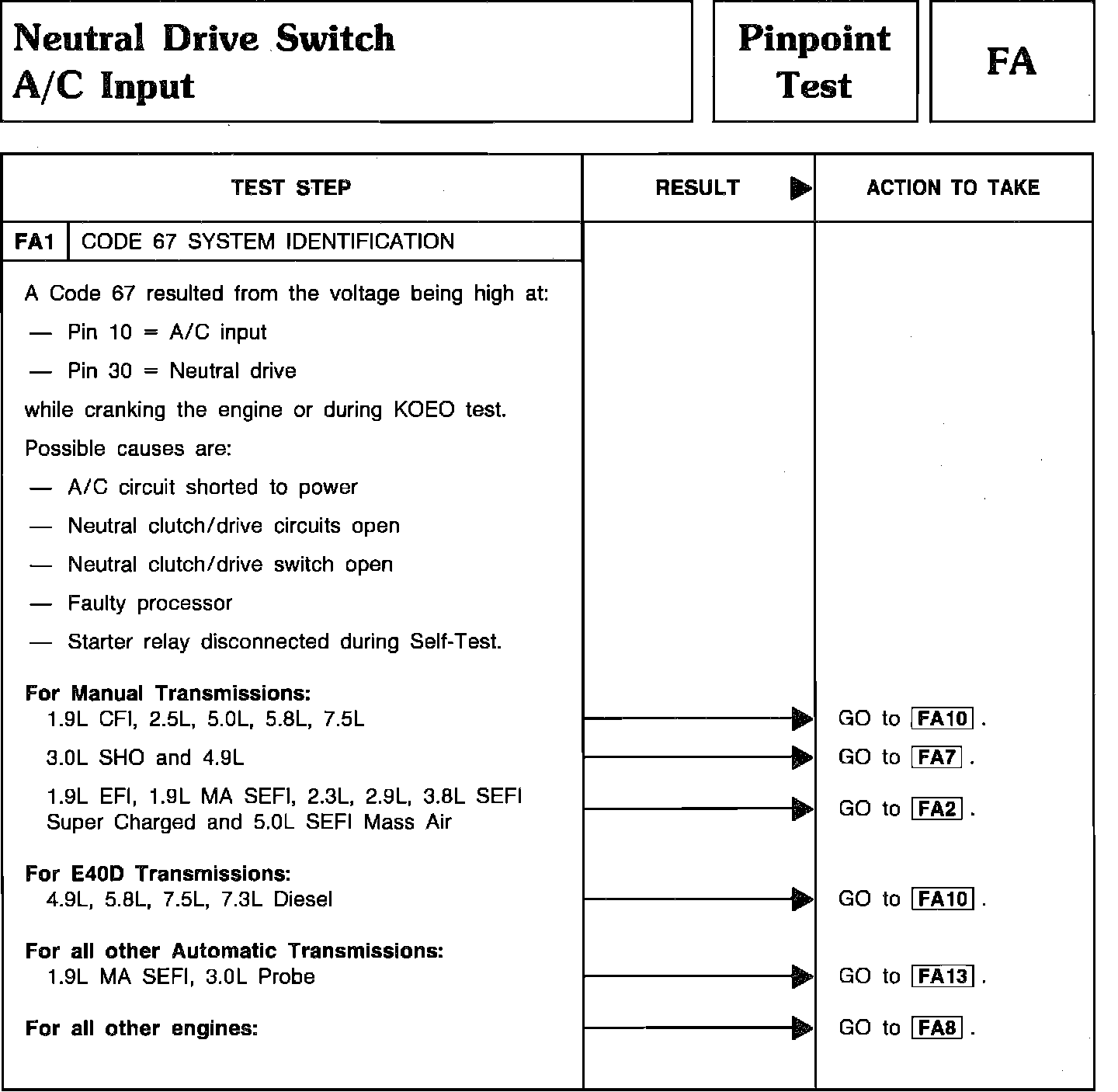Pinpoint Test FA1 - Neutral Drive Switch A/C Input: