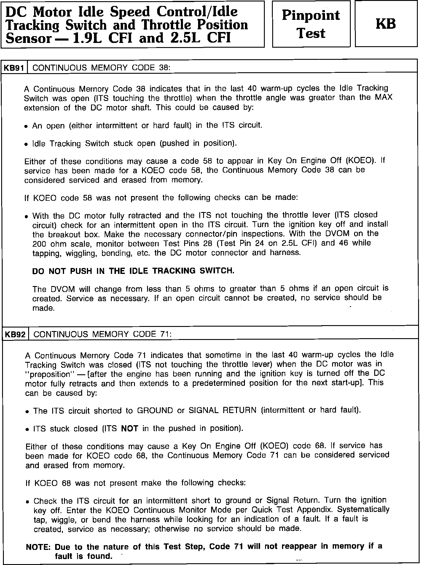 Pinpoint Test KB91 & KB92 - DC Motor Idle Speed Control/Idle Tracking Switch/TPS: