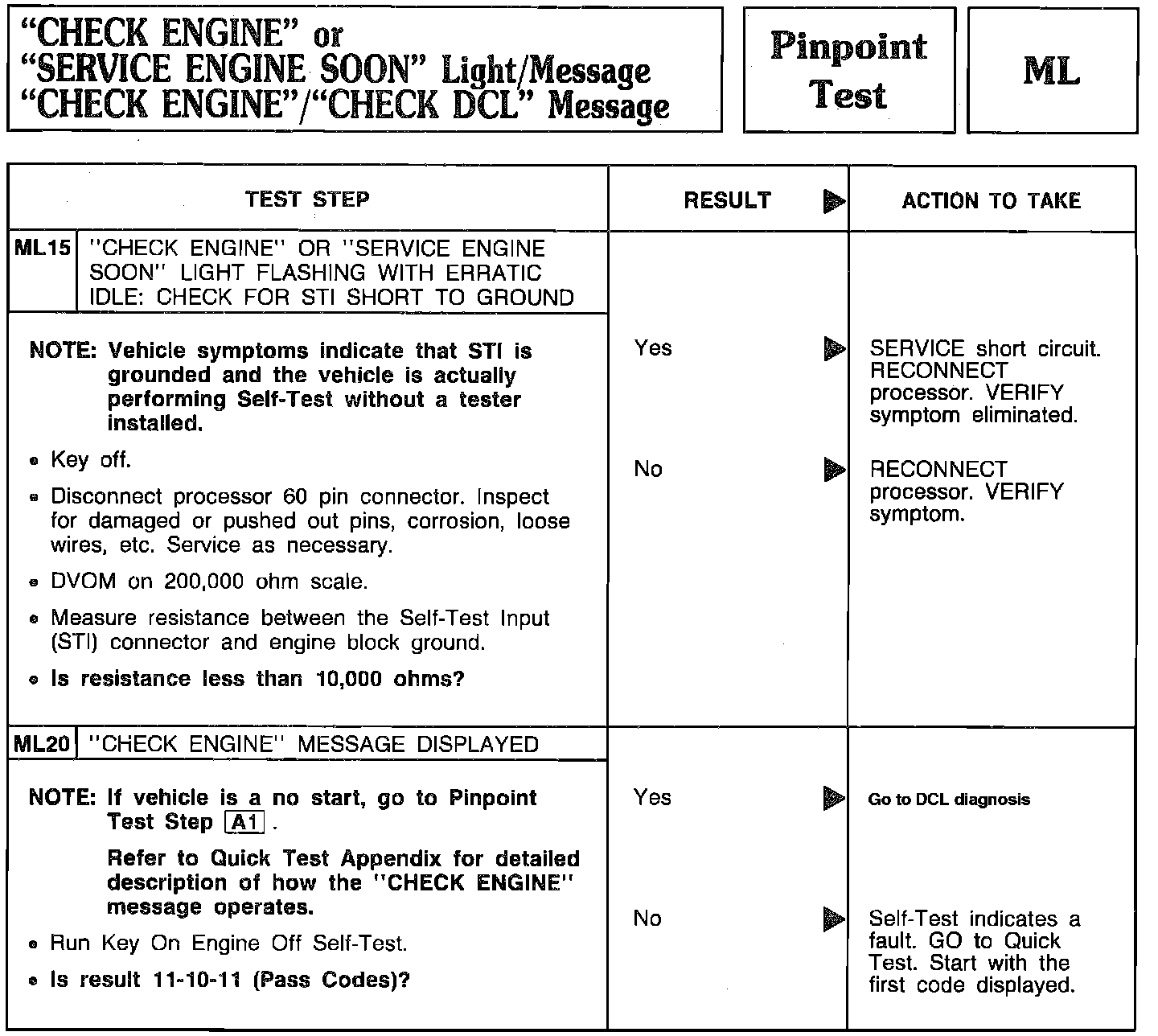Pinpoint Test ML15 & ML20 - "CHECK ENGINE" Light/Message/"CHECK DCL" Message: