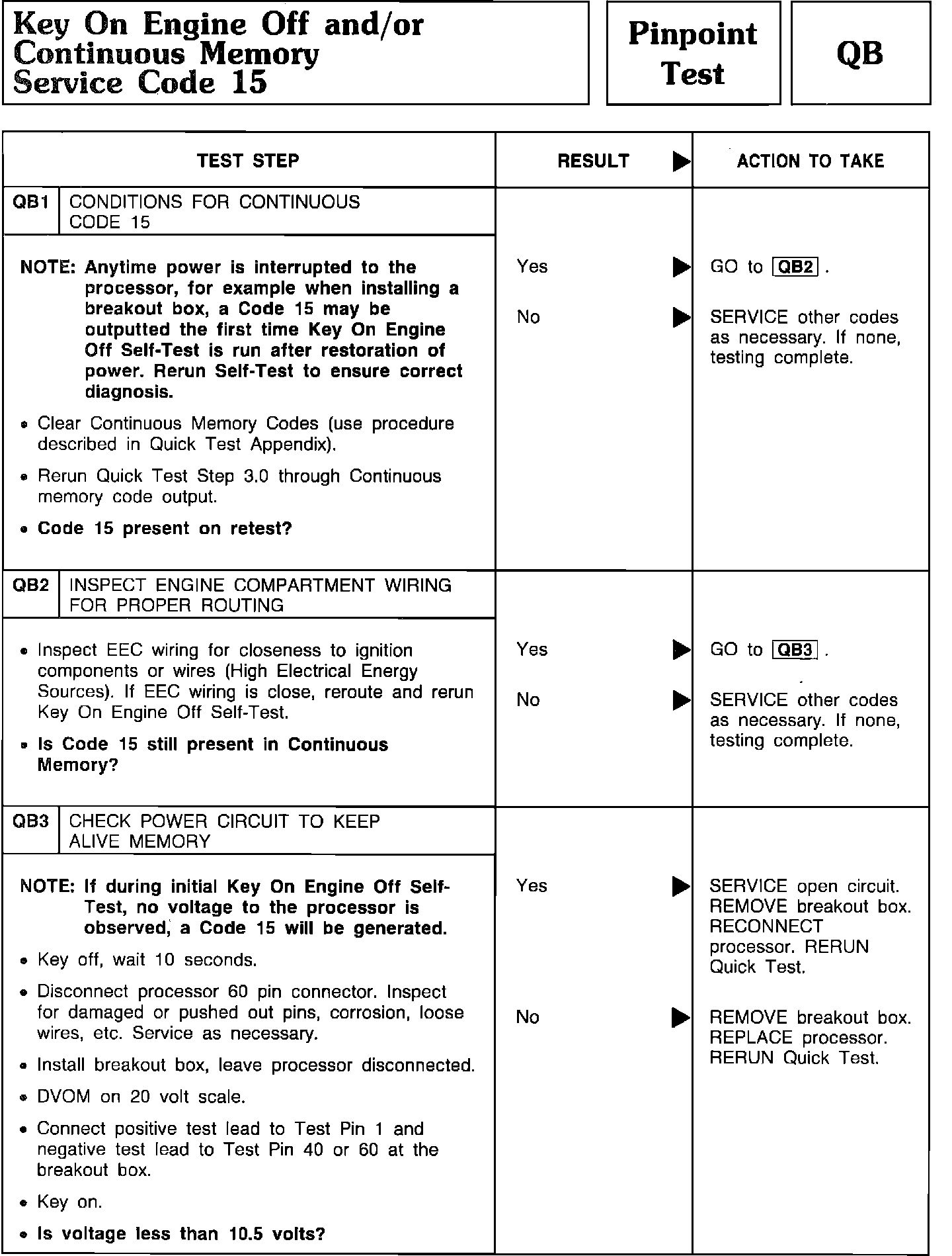 Pinpoint Test QB1 Thru QB3 - Key On Engine Off and/or Continuous Memory Code 15: