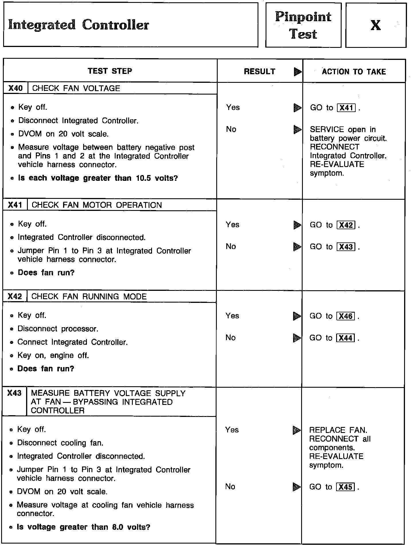 Pinpoint Test X40 Thru X43 - Integrated Controller: