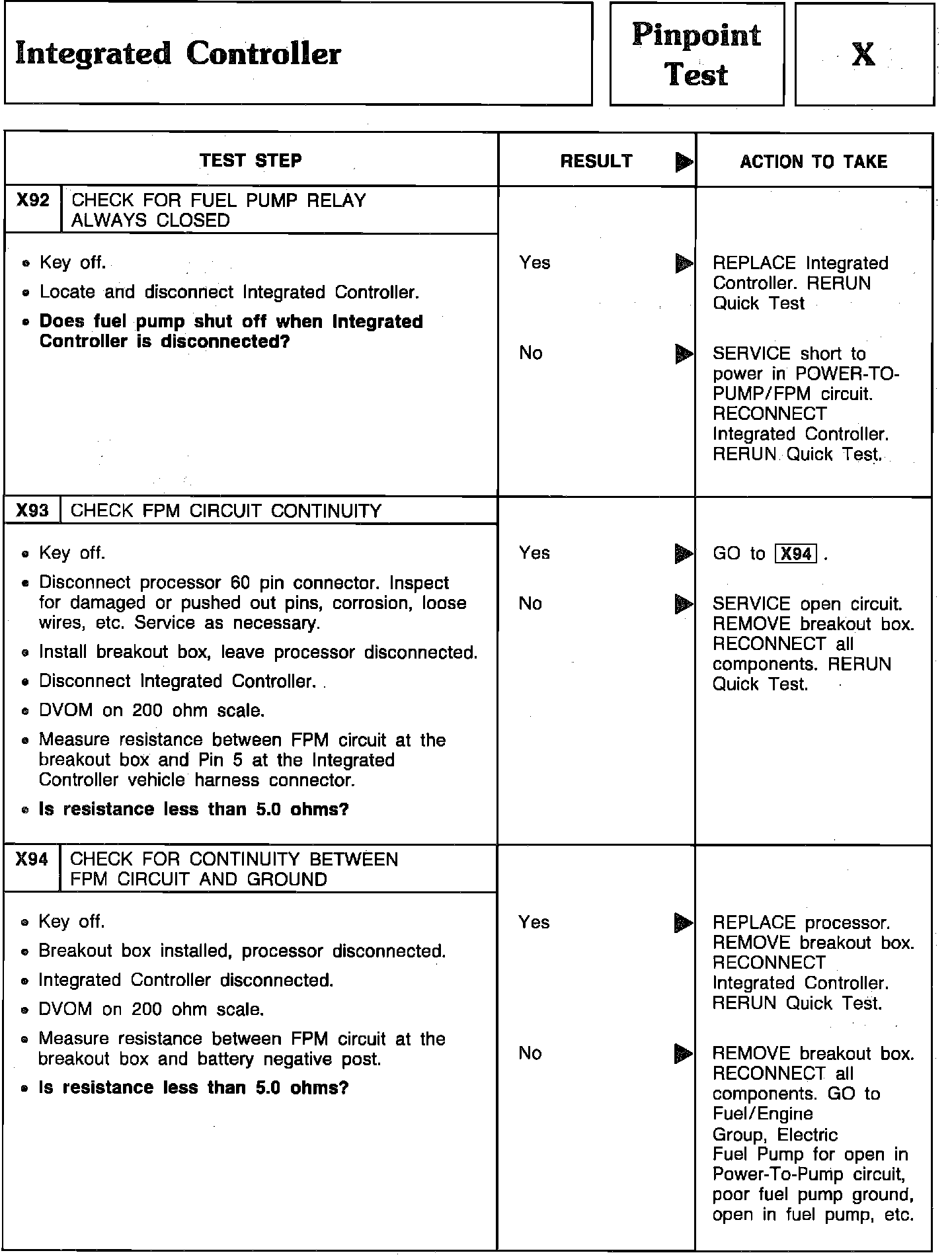 Pinpoint Test X92 Thru X94 - Integrated Controller: