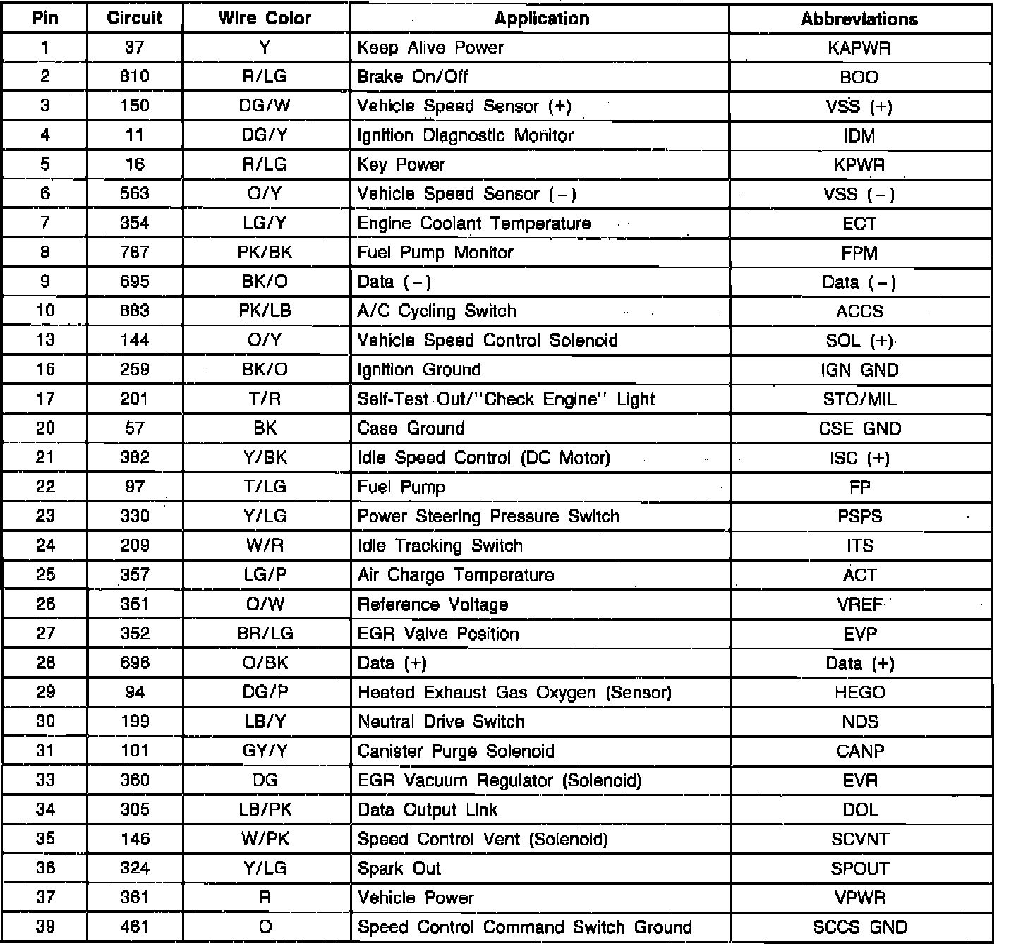 Connector Terminal I.D. - No. 1-39: