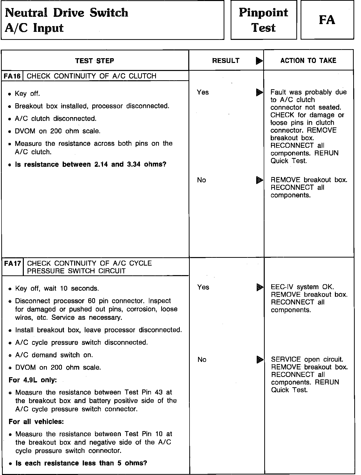 Pinpoint Test FA16 & FA17 - Neutral Drive Switch A/C Input: