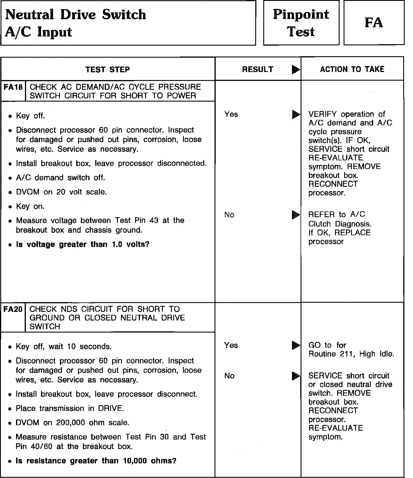 Pinpoint Test FA18 & FA20 - Neutral Drive Switch A/C Input: