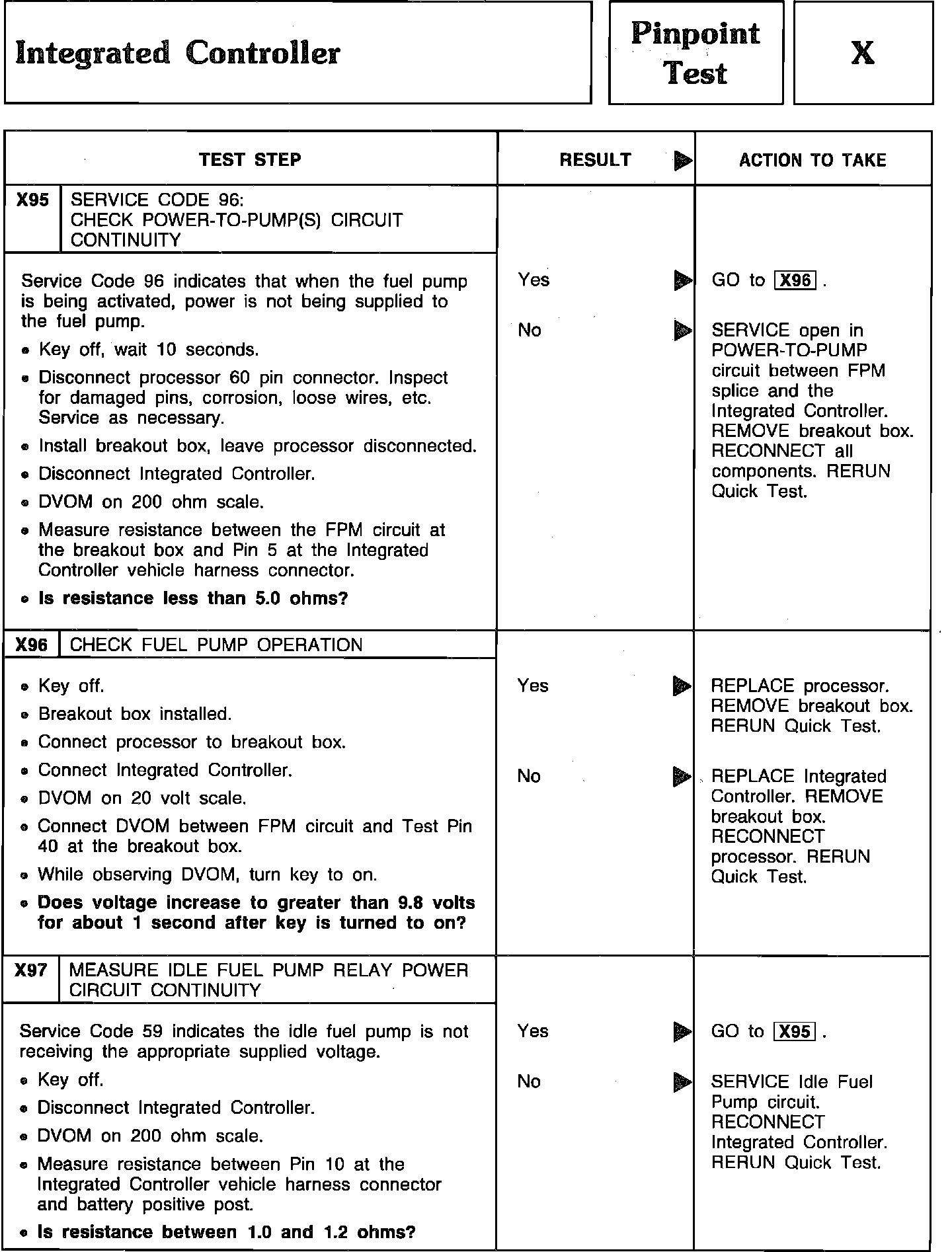 Pinpoint Test X95 Thru X97 - Integrated Controller: