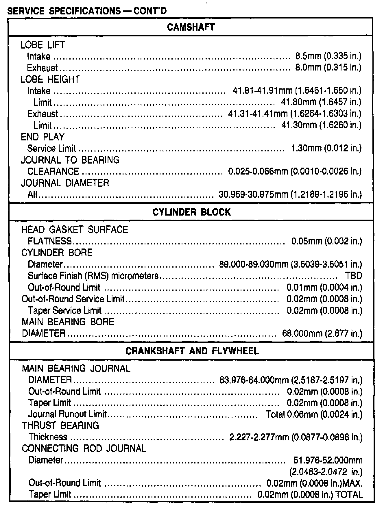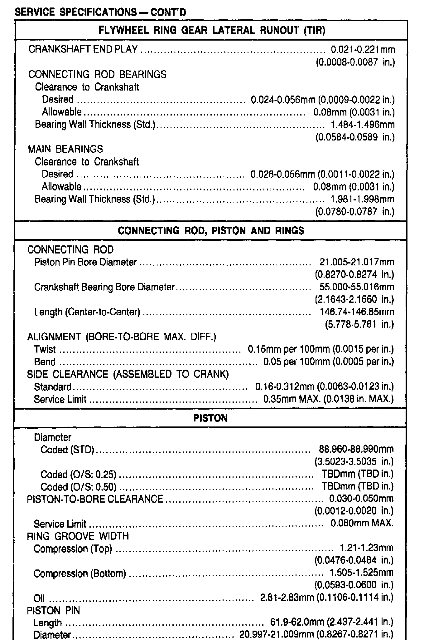 General Engine Specifications