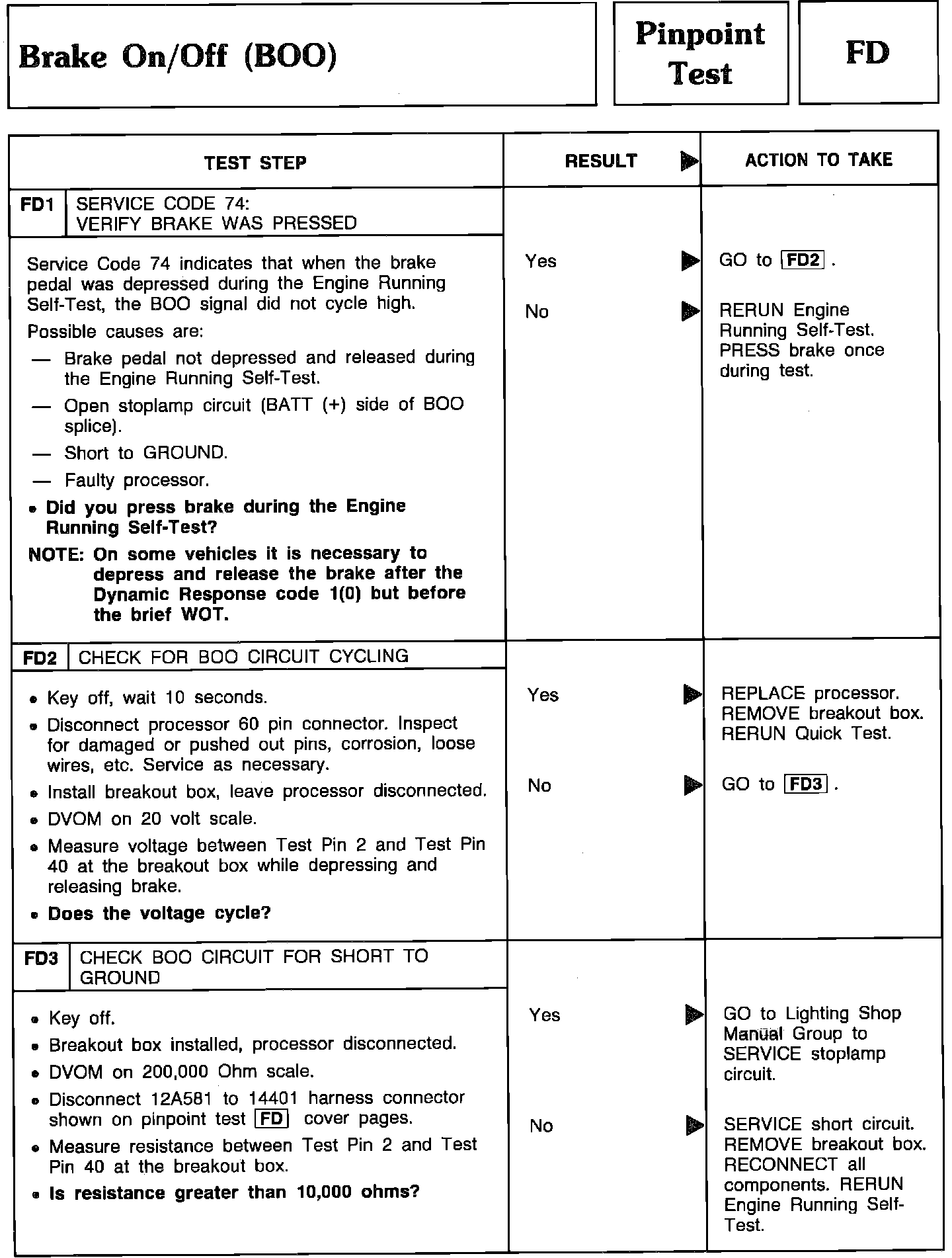Pinpoint Test FD1 Thru FD3 - Brake On/Off (BOO):