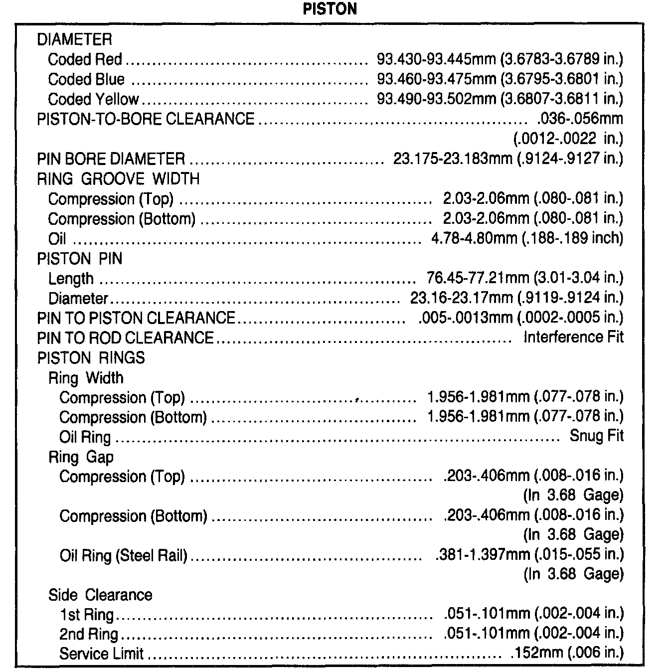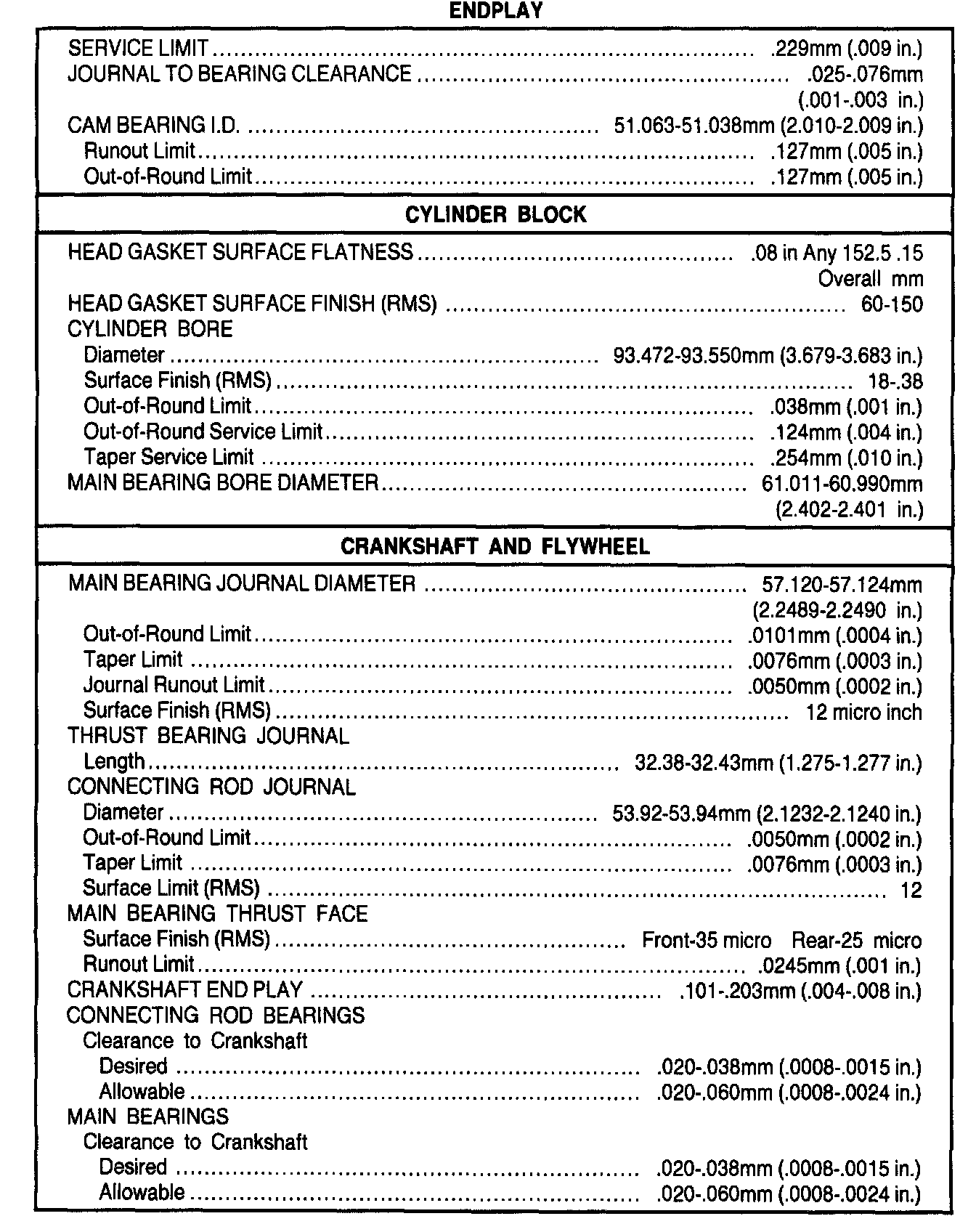 General Engine Specifications