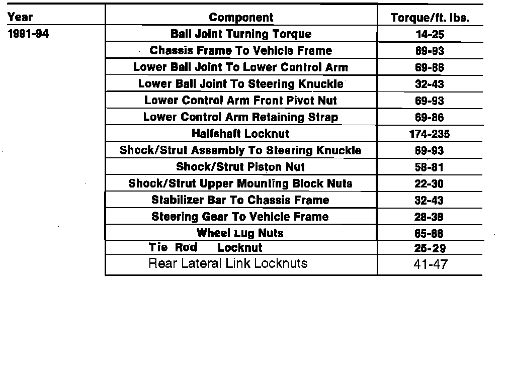 Tightening Specifications: