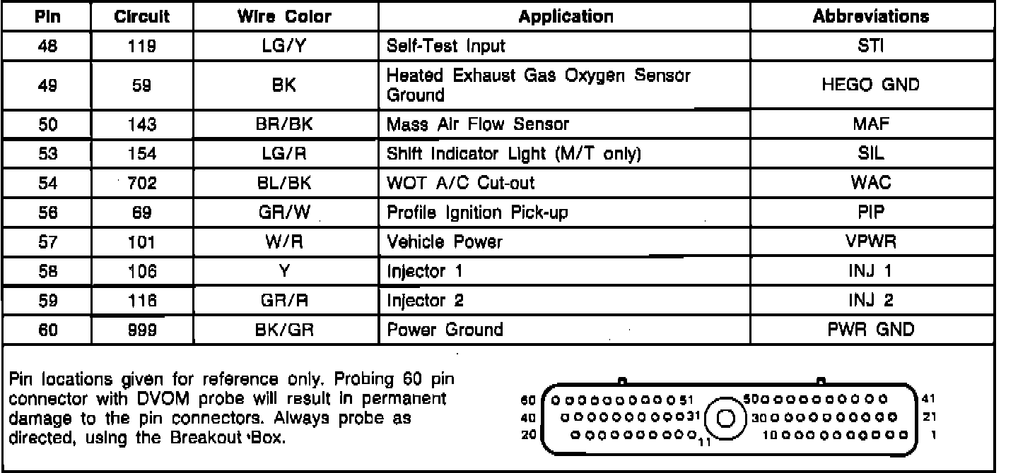 Electronic Control Assembly (ECA) Pinout Chart: