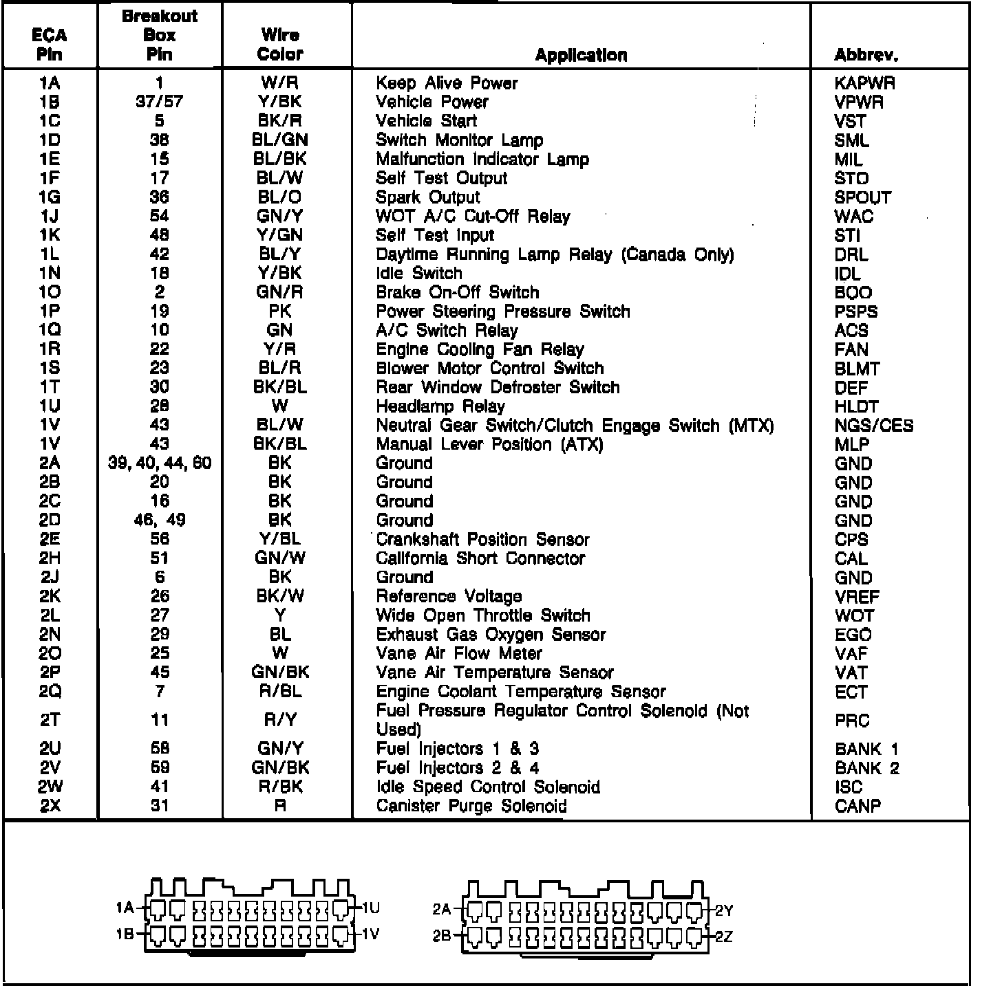 Electronic Control Assembly (ECA) Pin Identification: