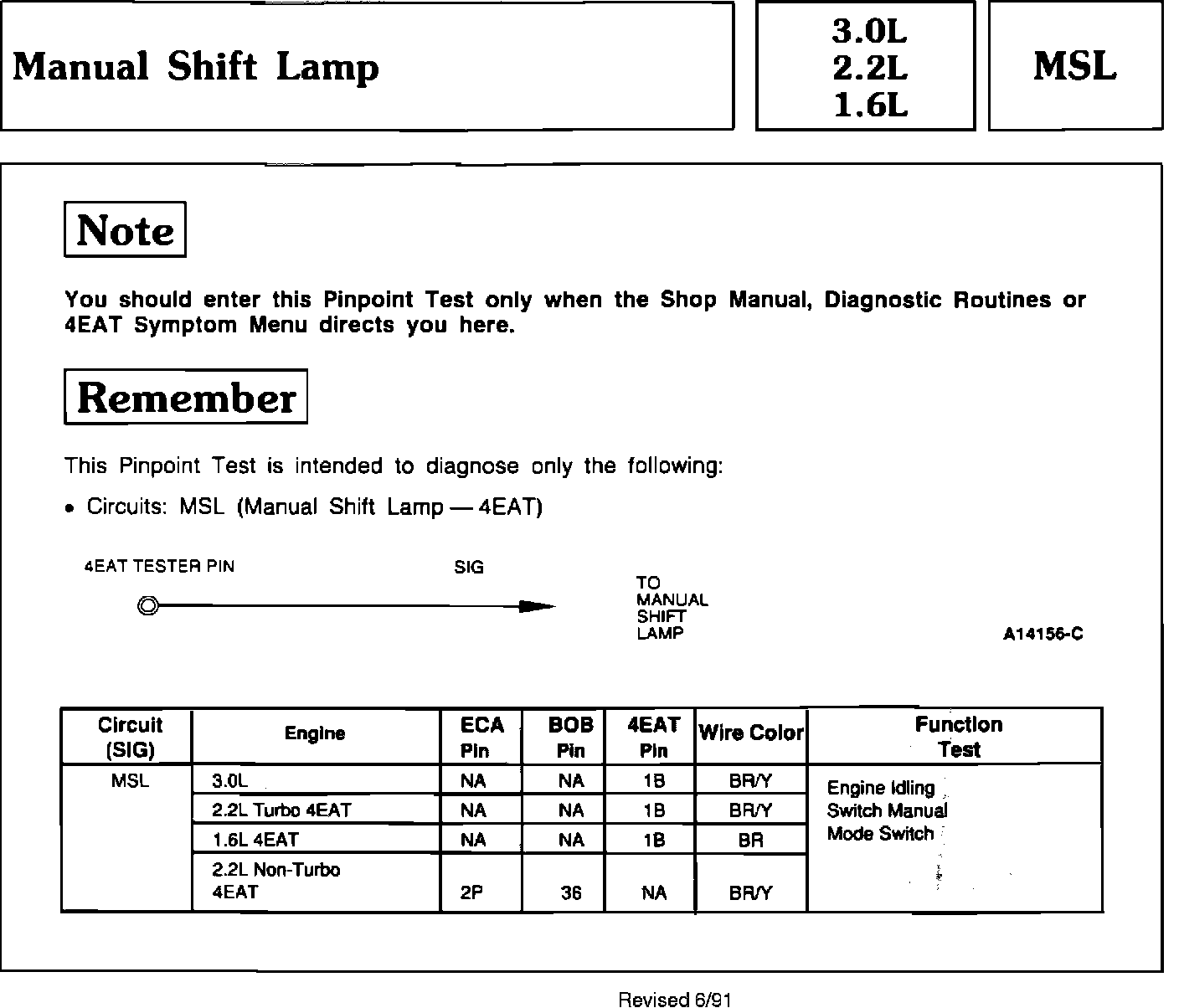 Manual Shift Lamp 3.0L, 2.2L and 1.6L