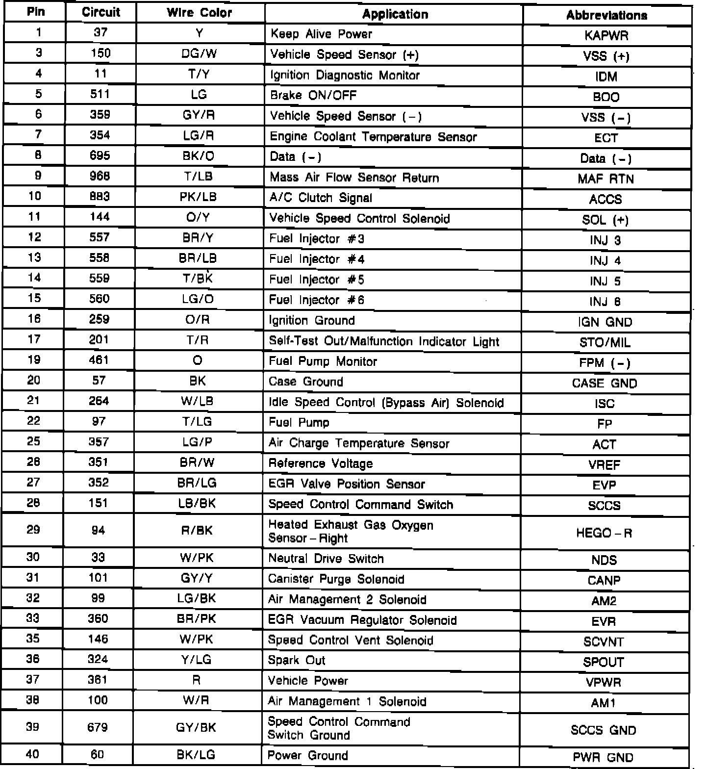 Electronic Control Assembly (ECA) Connector Pinout: