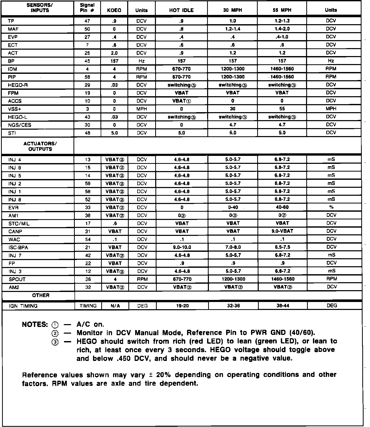 Normal Scan Data Values (Includes PIDs)