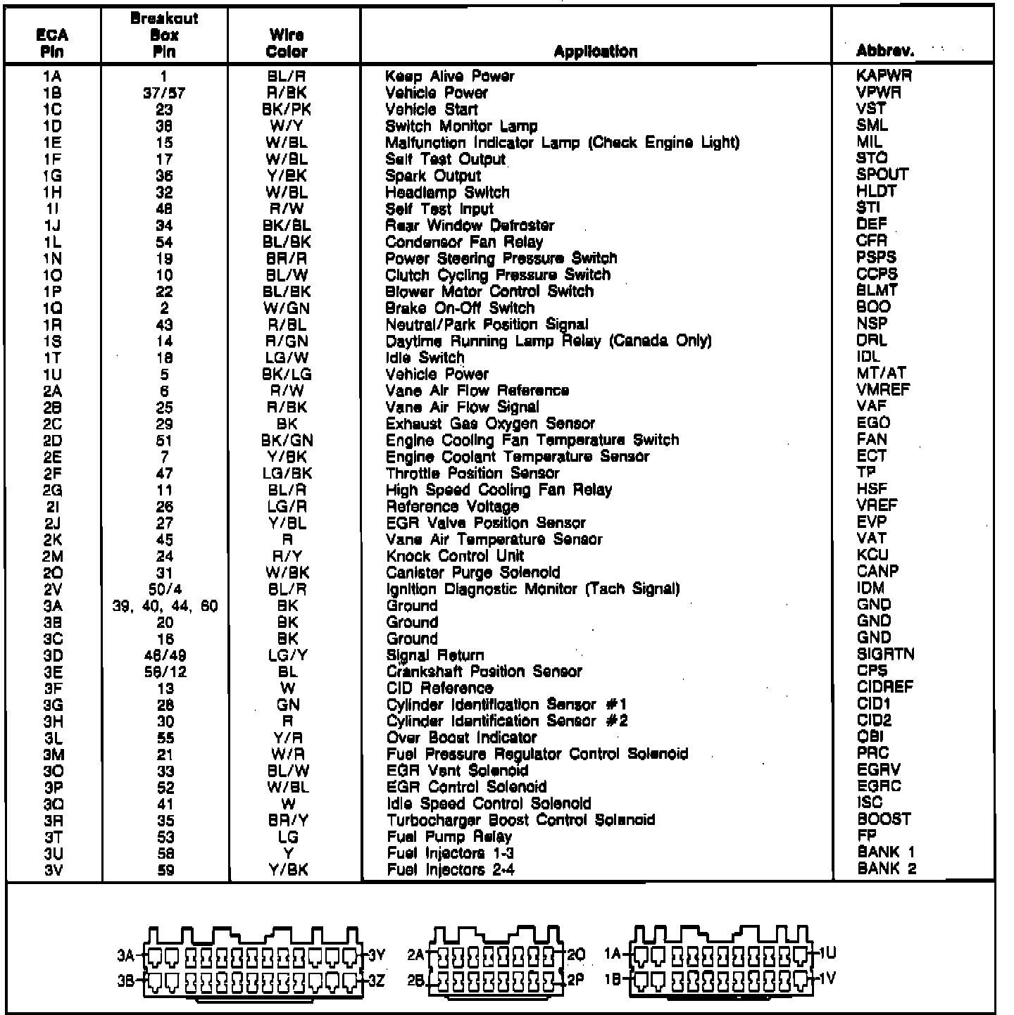 Electronic Control Assembly (ECA) Connector Pin Identification Turbo (ATX):