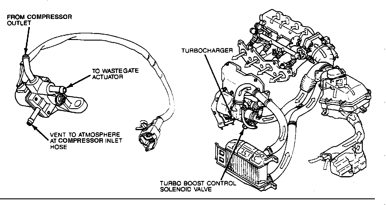 The Boost Control Solenoid (BOOST) controls turbocharger boost pressure by regulating the boost signal to the wastegate actuator.
