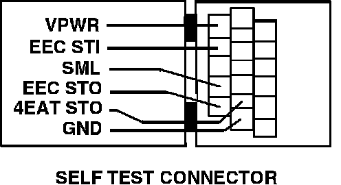 2. Turn the ignition switch OFF. Locate the self test connector in the drivers side rear corner of the engine compartment and ground the Self Test Input (STI) wire.